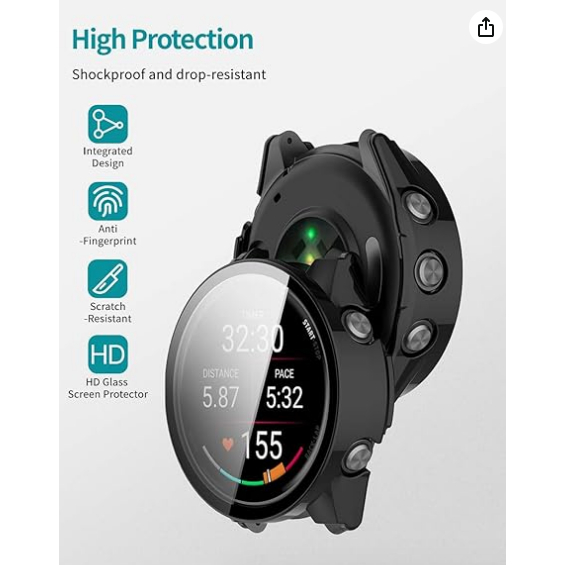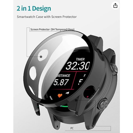 Capa protetora para o Garmin Forerunner 970, com protetor de tela integrado em vidro temperado 9H, feita de policarbonat
