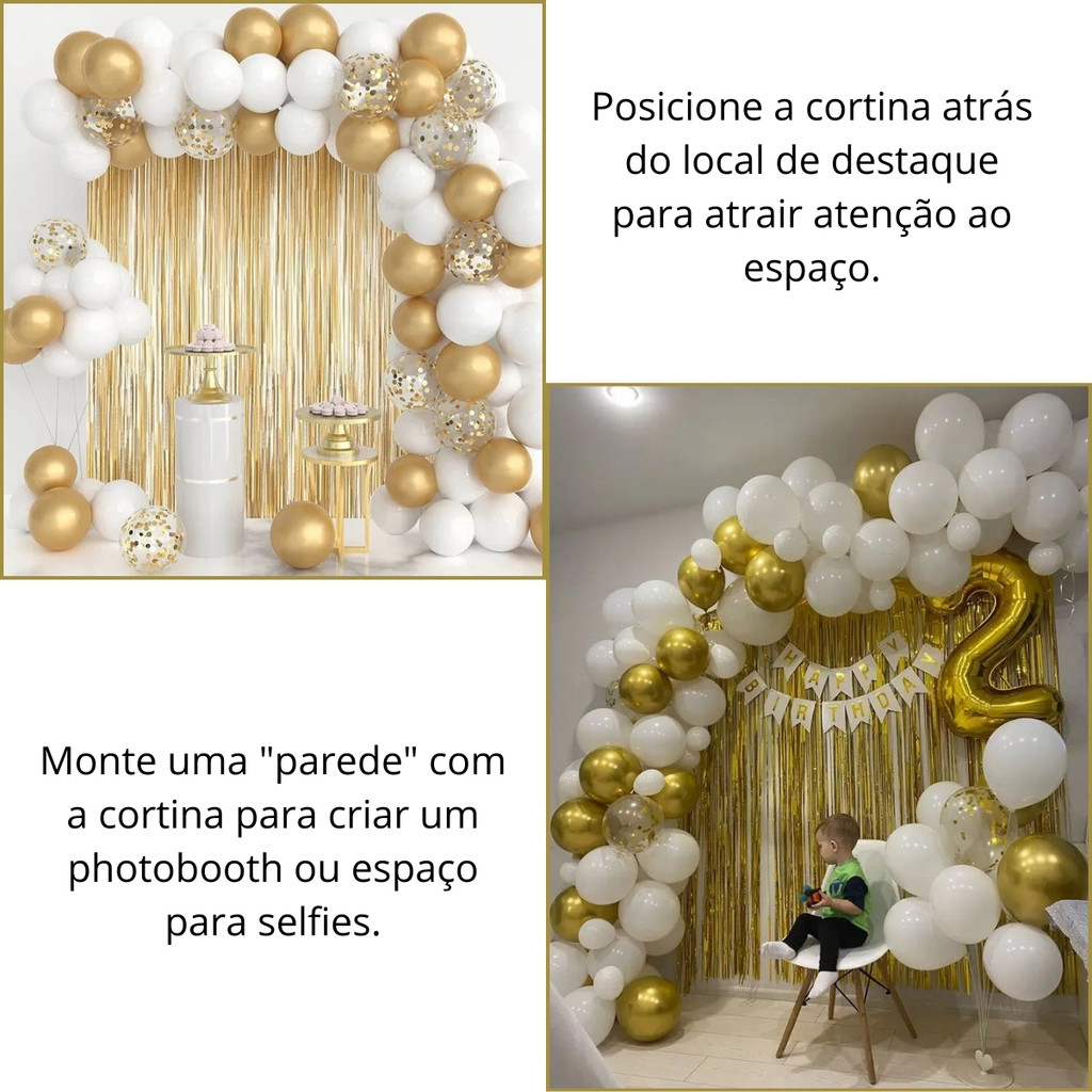 Cortina Metalizada Franja Para Festa Decoração 1m-1550 Yoss