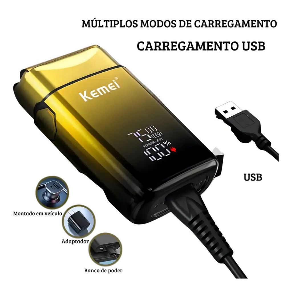 Maquina De Barbear Acabamento aparar Pelo e Cabelo Shaver Aparador Kemei-tx10 Barbeador Elétrico Com Tela Led - Bivolt