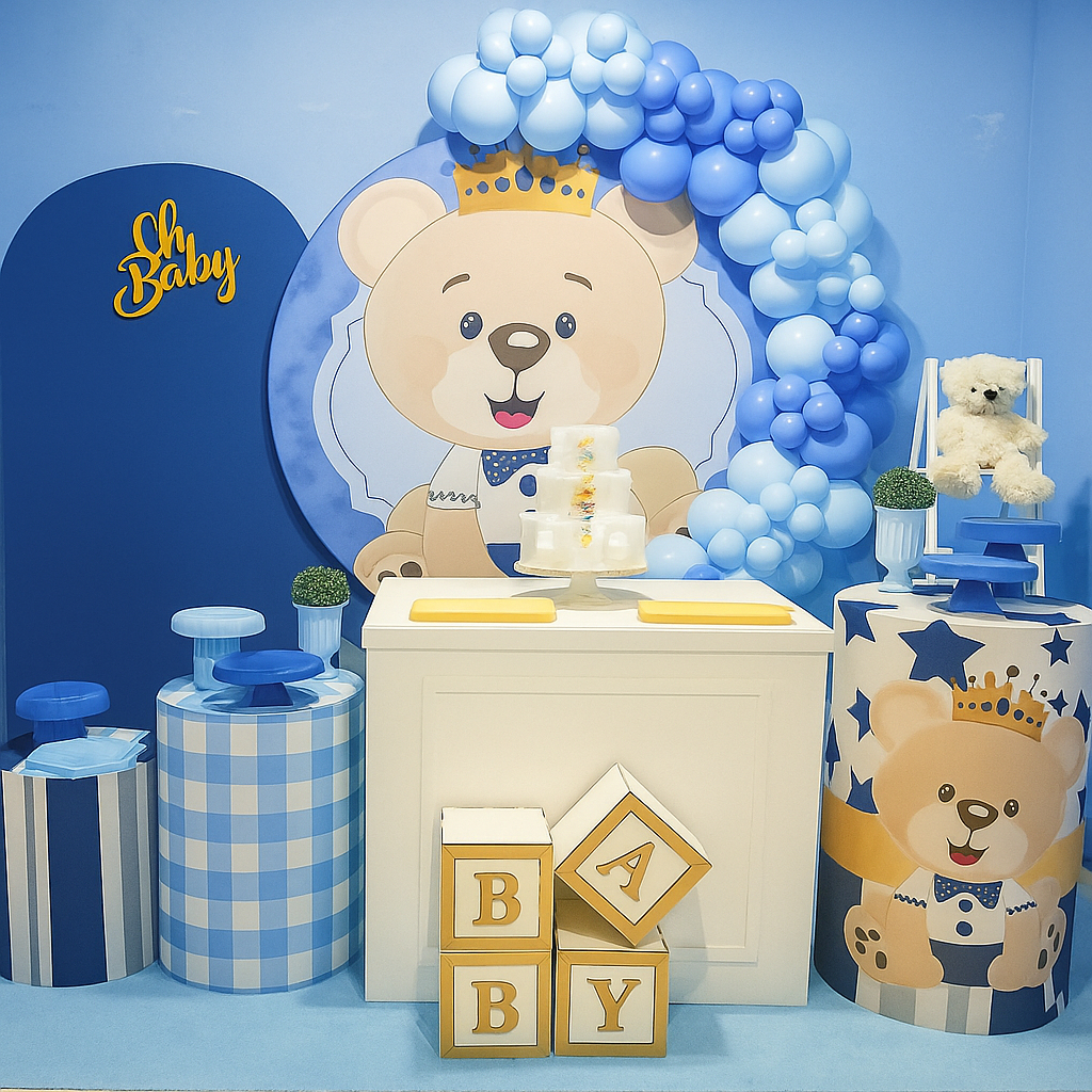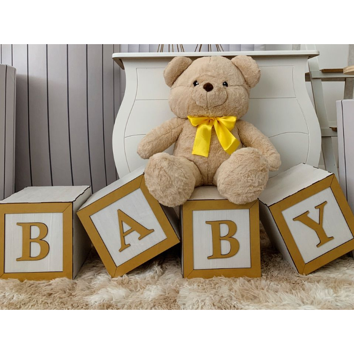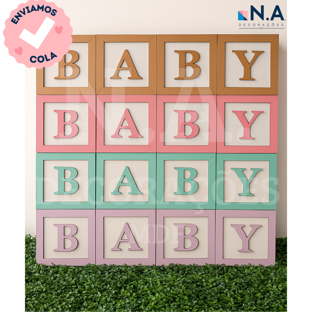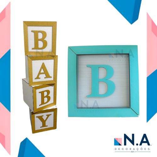 KIT Cubos BABY MDF 20cm – Kit c/ 4 Letras para Chá Revelação, Bebê ou Festa – Dourado e Cores
