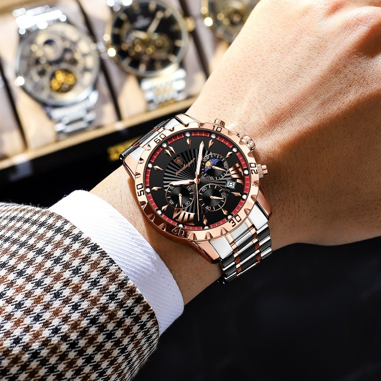 Relógios Masculinos POEDAGAR Cronógrafo Esportivo De Luxo De Aço Inoxidável Relógio Masculino À Prova D'água Luminoso De Data Para Homens Relógios Quartzo De Alta Qualidade Relógio De Pulso Masculinos + Box