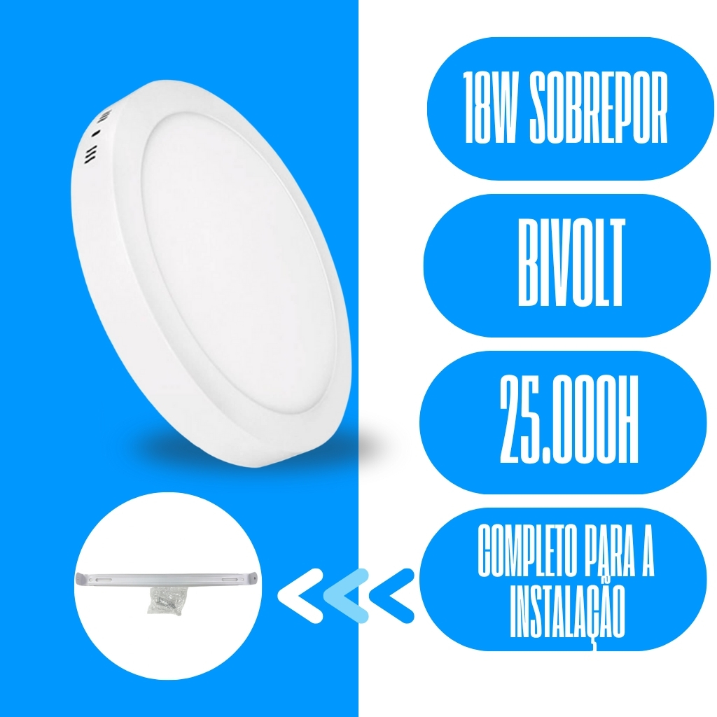 Kit 7 Luminária Painel Plafon Sobrepor Redondo Led 18w Bivolt ELGIN