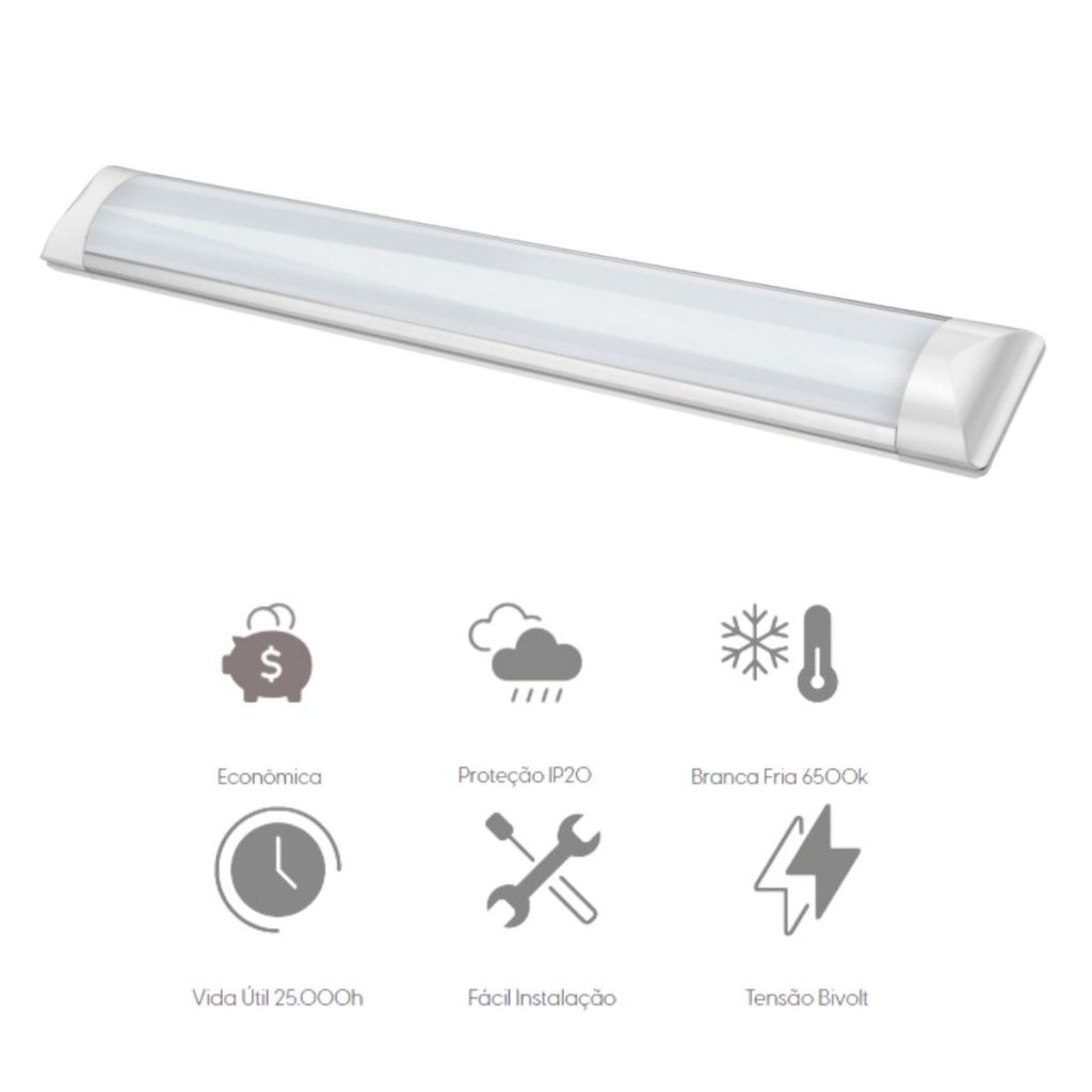 Kit 5 Luminárias Tubular Flat 120cm Led 36w Sobrepor Slim Calha - Elgin
