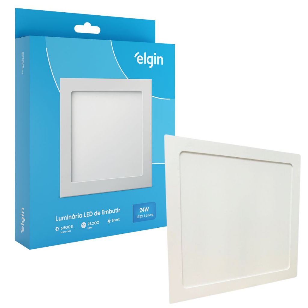 Luminaria Painel Plafon Embutir Bivolt Quadrado 24w Led Teto - ELGIN