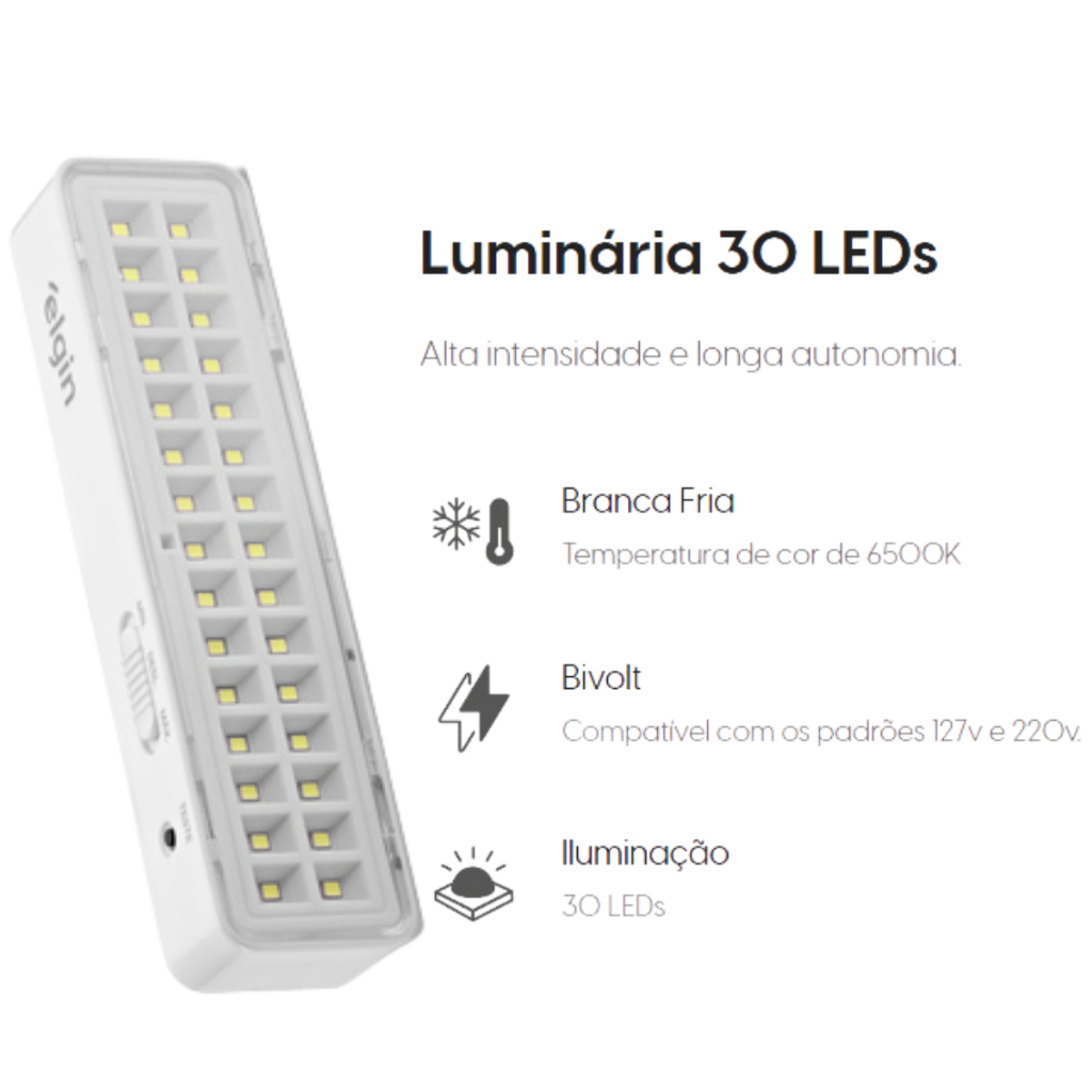 Kit 10 Luminárias De Emergência 30 Leds Bivolt Recarregável - Elgin