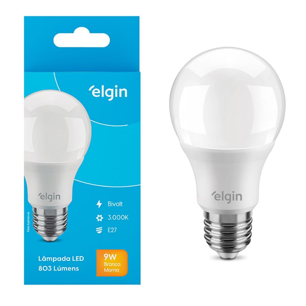 Kit 5 Lâmpadas Led Bulbo 9w E27 6500k Branco Frio/3000k Branco Quente ELGIN Inmetro