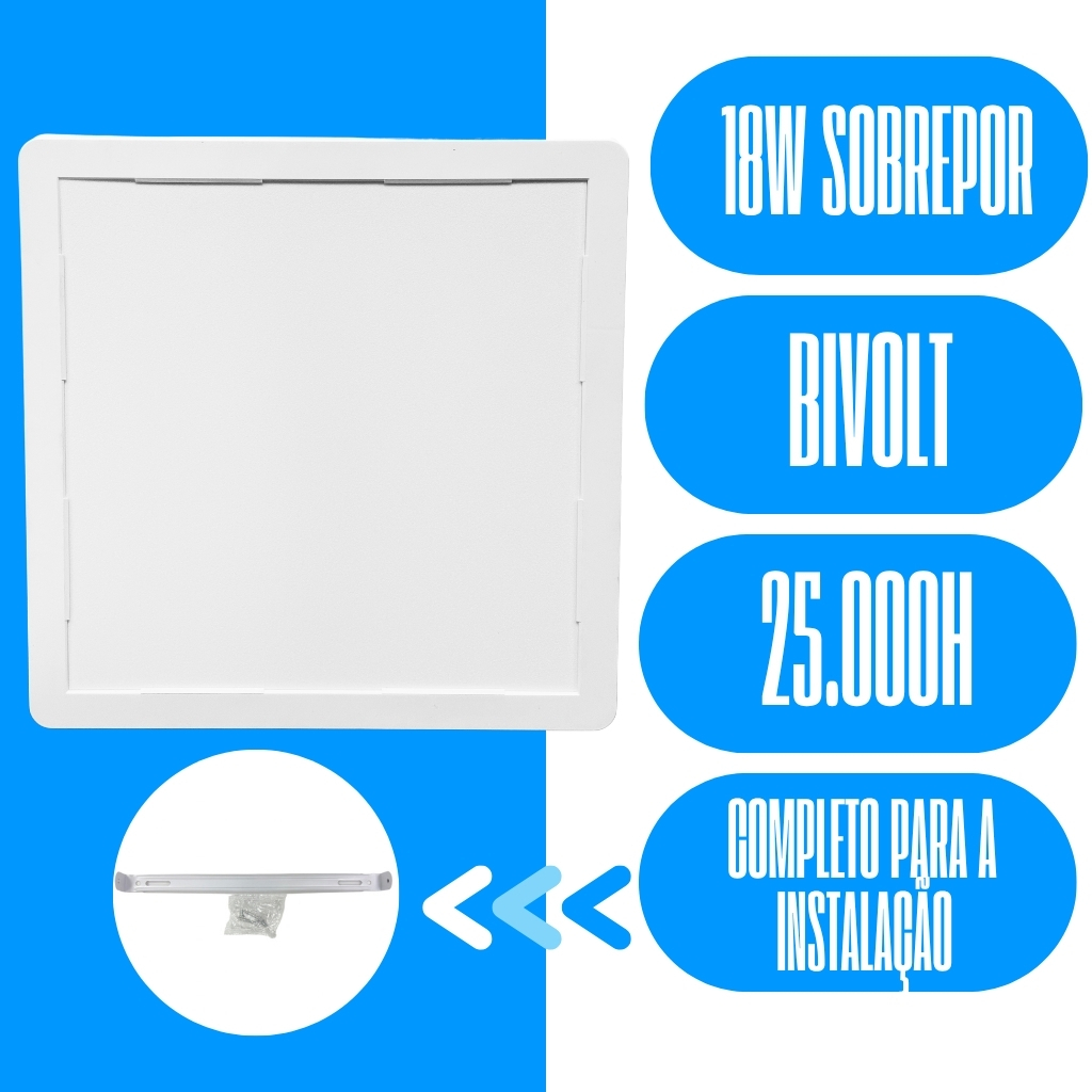 Kit 6 Luminária Painel Plafon Sobrepor Quadrado Led 18w Bivolt ELGIN