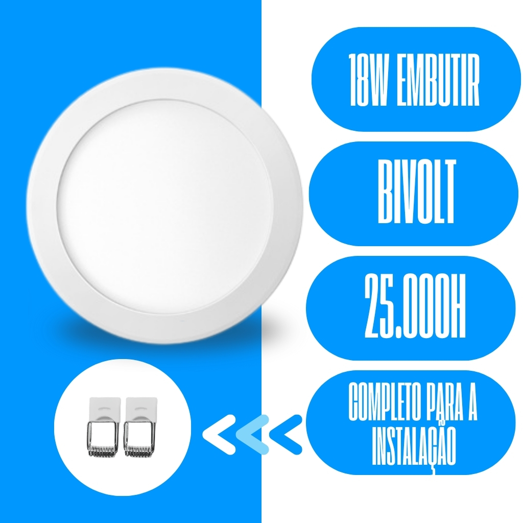 Kit 20 Luminária Painel Plafon Embutir Redondo Led 18w Bivolt ELGIN