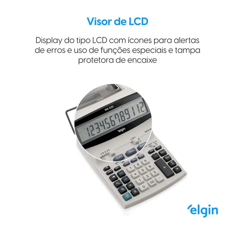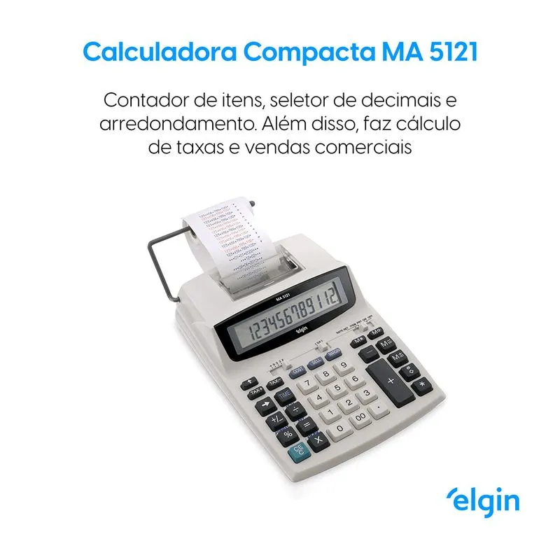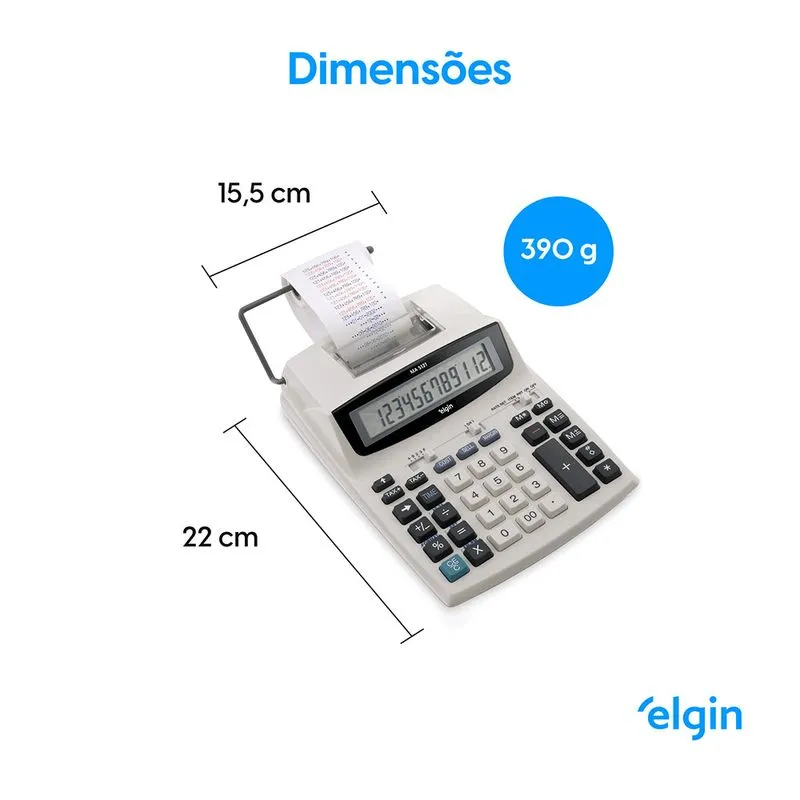 Calculadora De Mesa Com Bobina 12 Dígitos MR6124 C/Calendário, Relógio e impressão de Data - Elgin