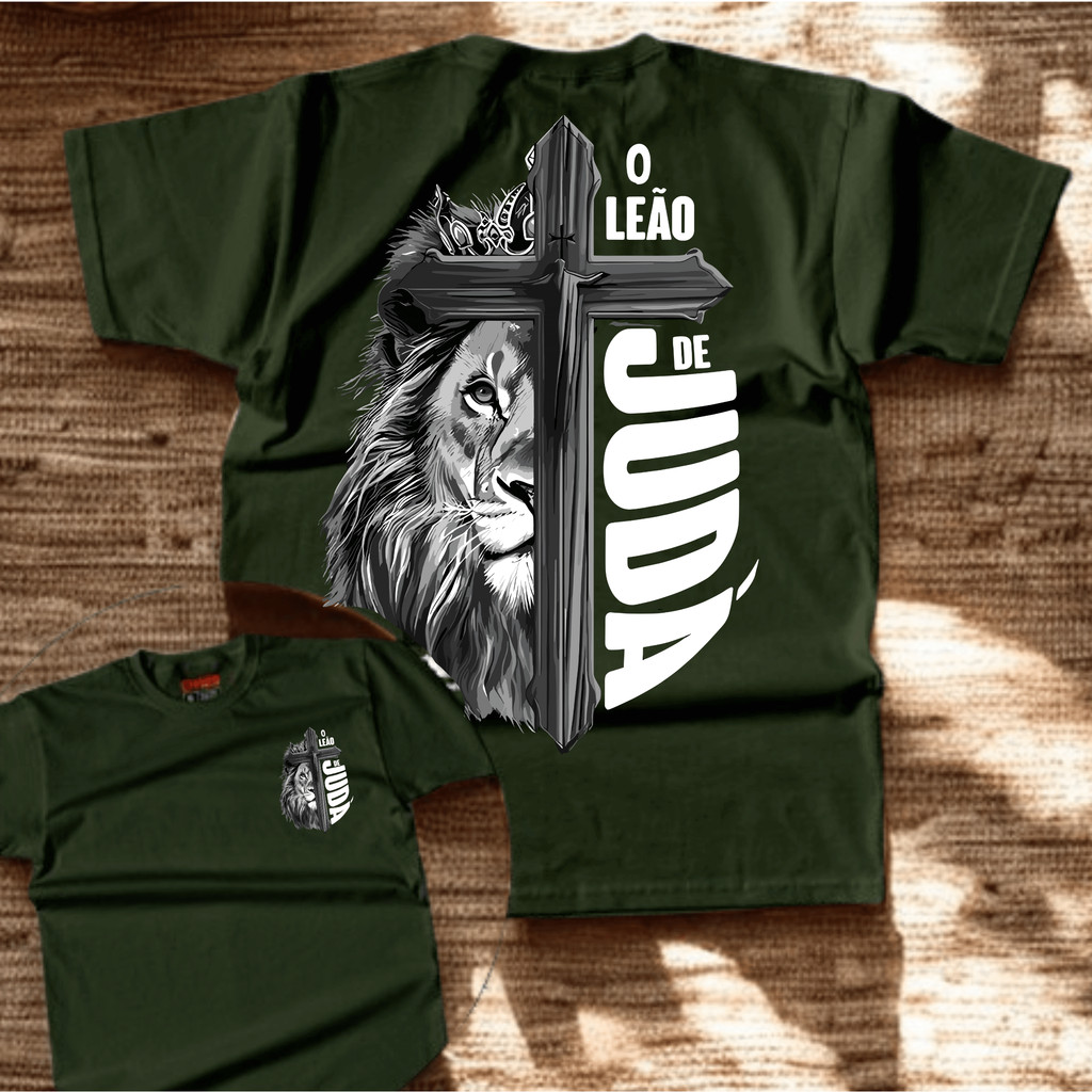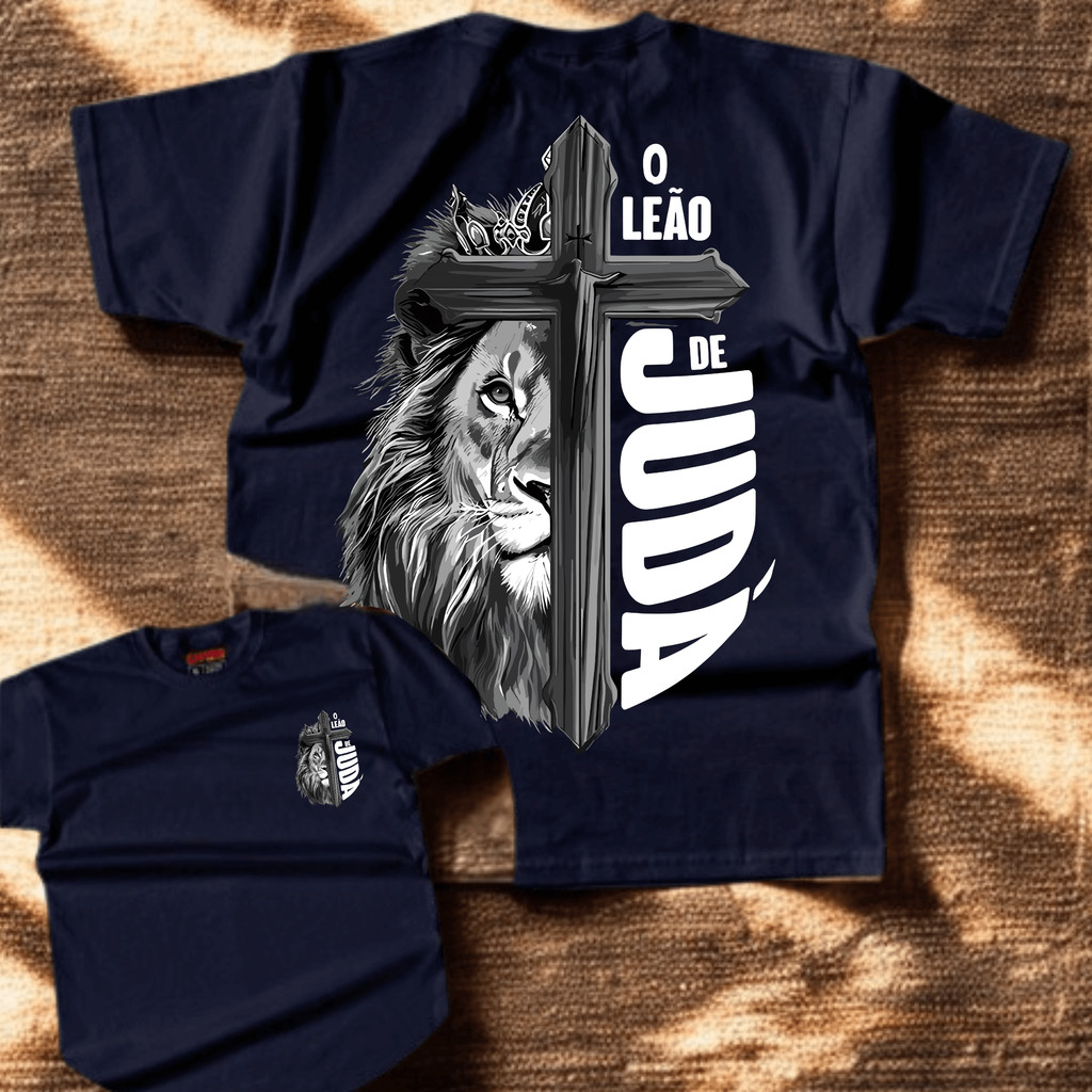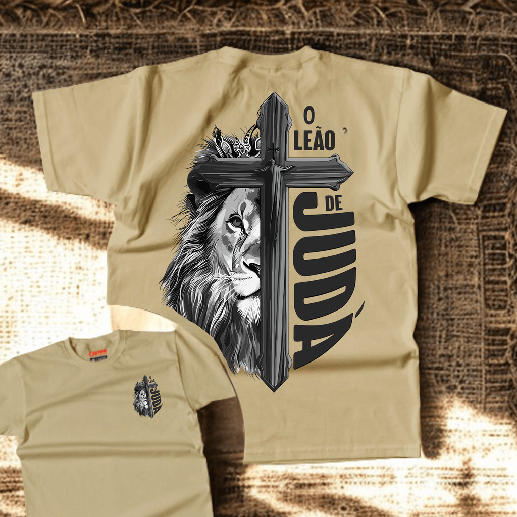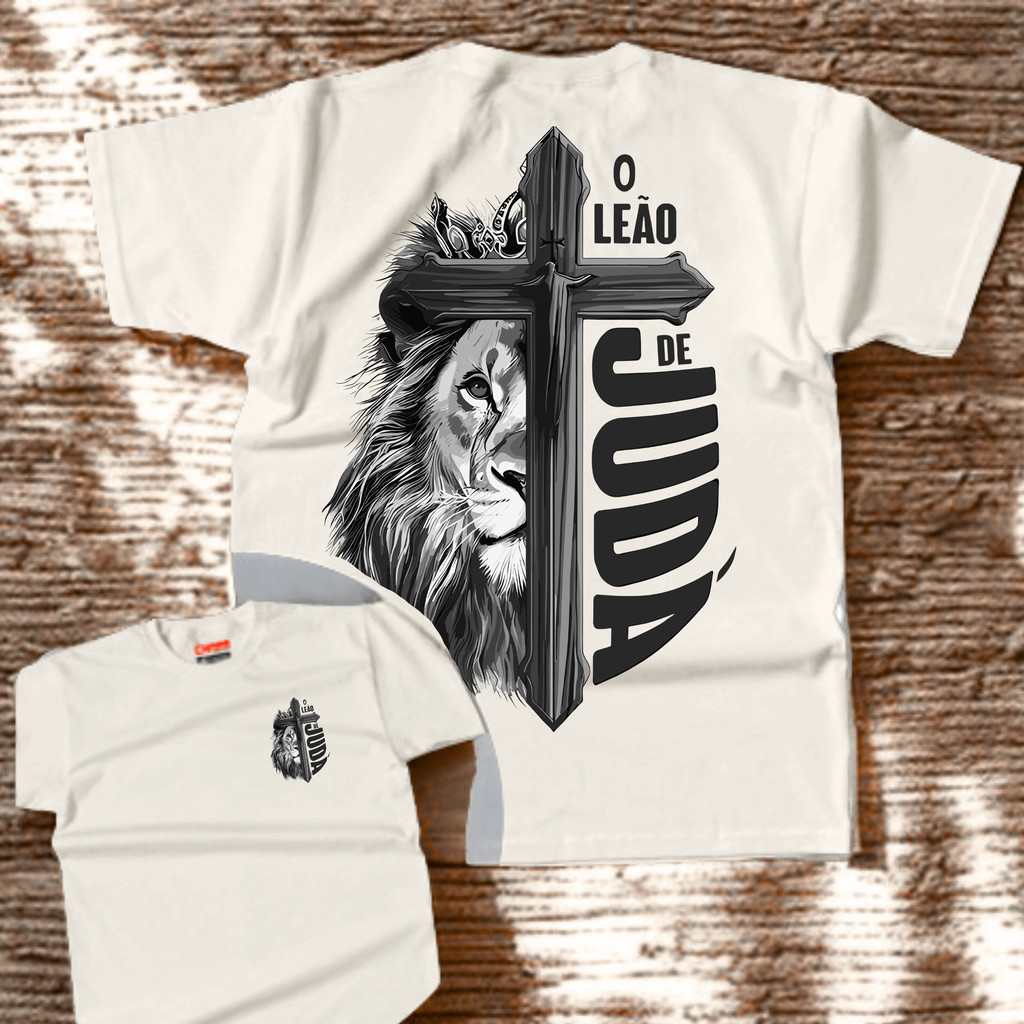 Camiseta T-shirt camisa Cristã "Leão de Juda" Estampa Gospel Jesus Malha Premium Algodão Penteado 100% Algodão
