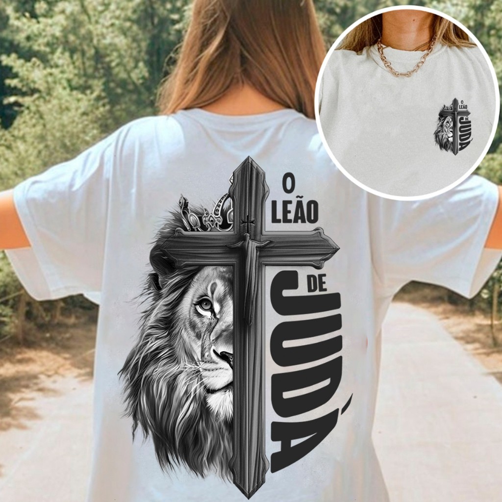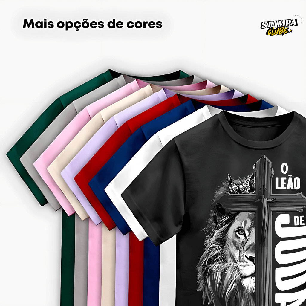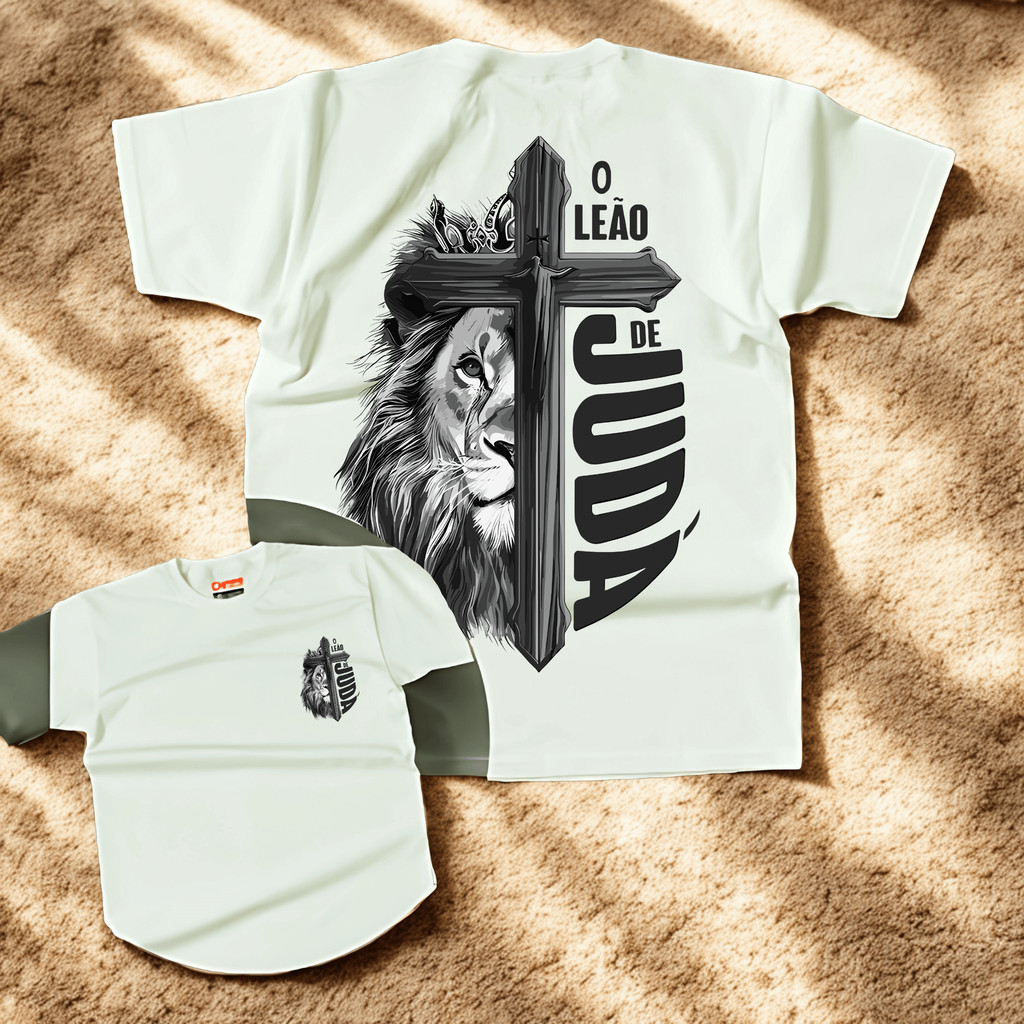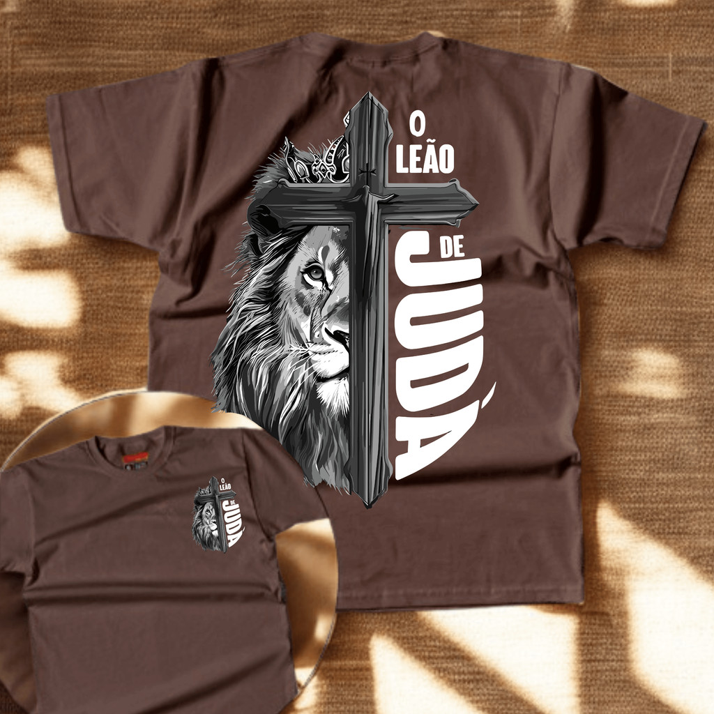 Camiseta T-shirt camisa Cristã "Leão de Juda" Estampa Gospel Jesus Malha Premium Algodão Penteado 100% Algodão