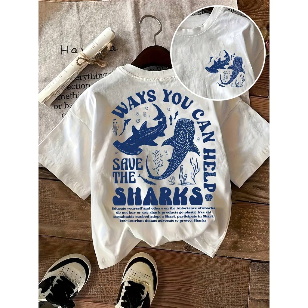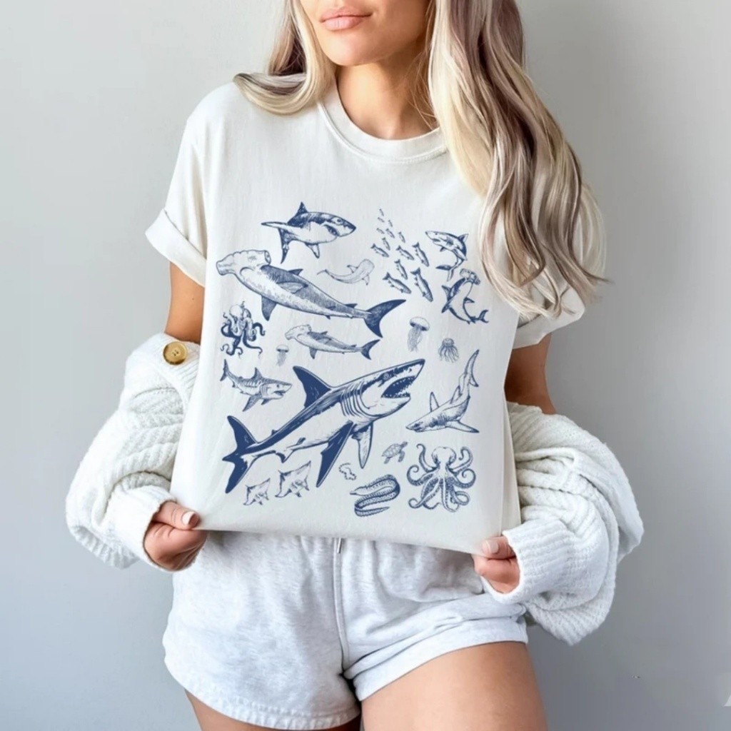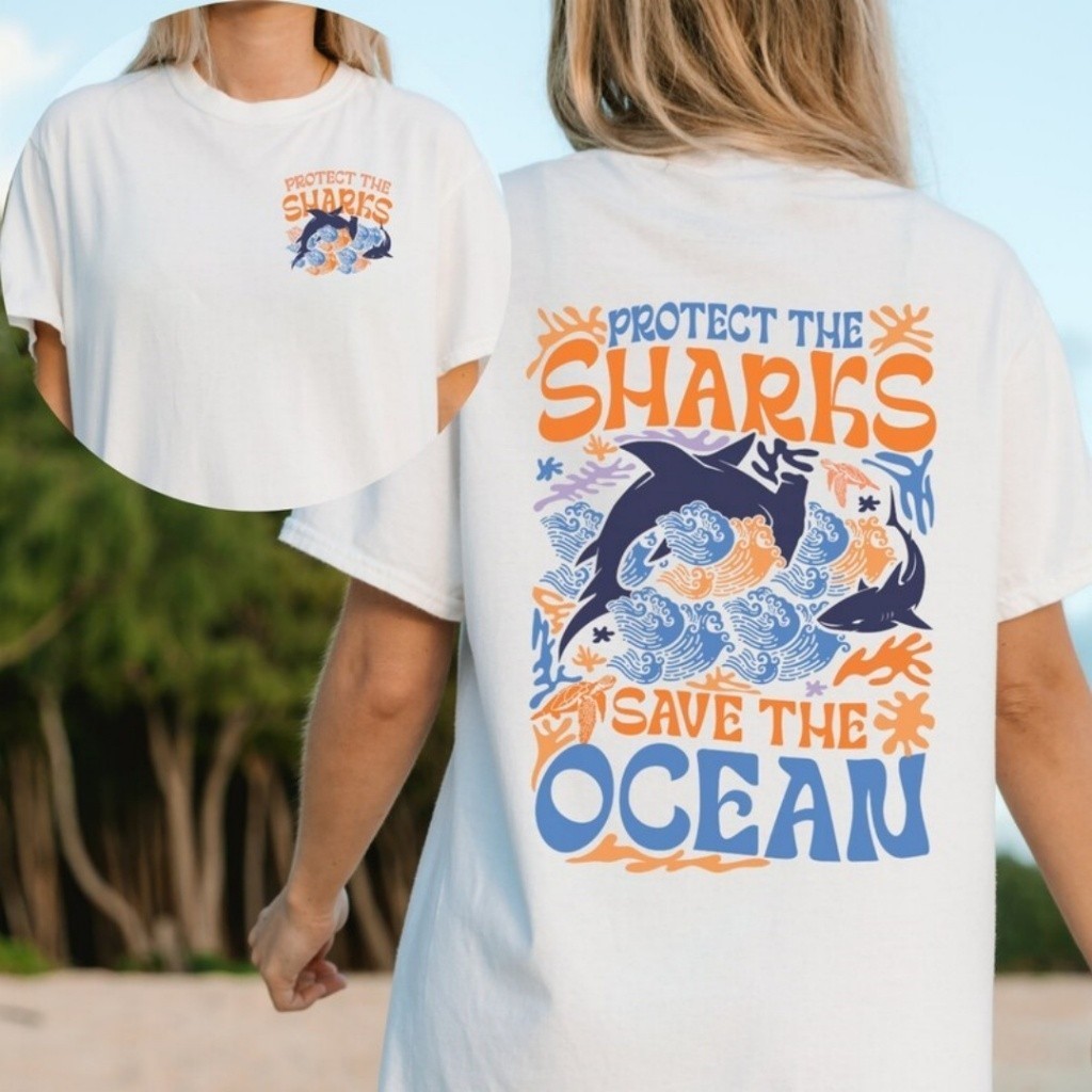 Camiseta Feminina Estampada Tubarão – Estilo Casual e Proteção aos Oceanos 100% Algodão