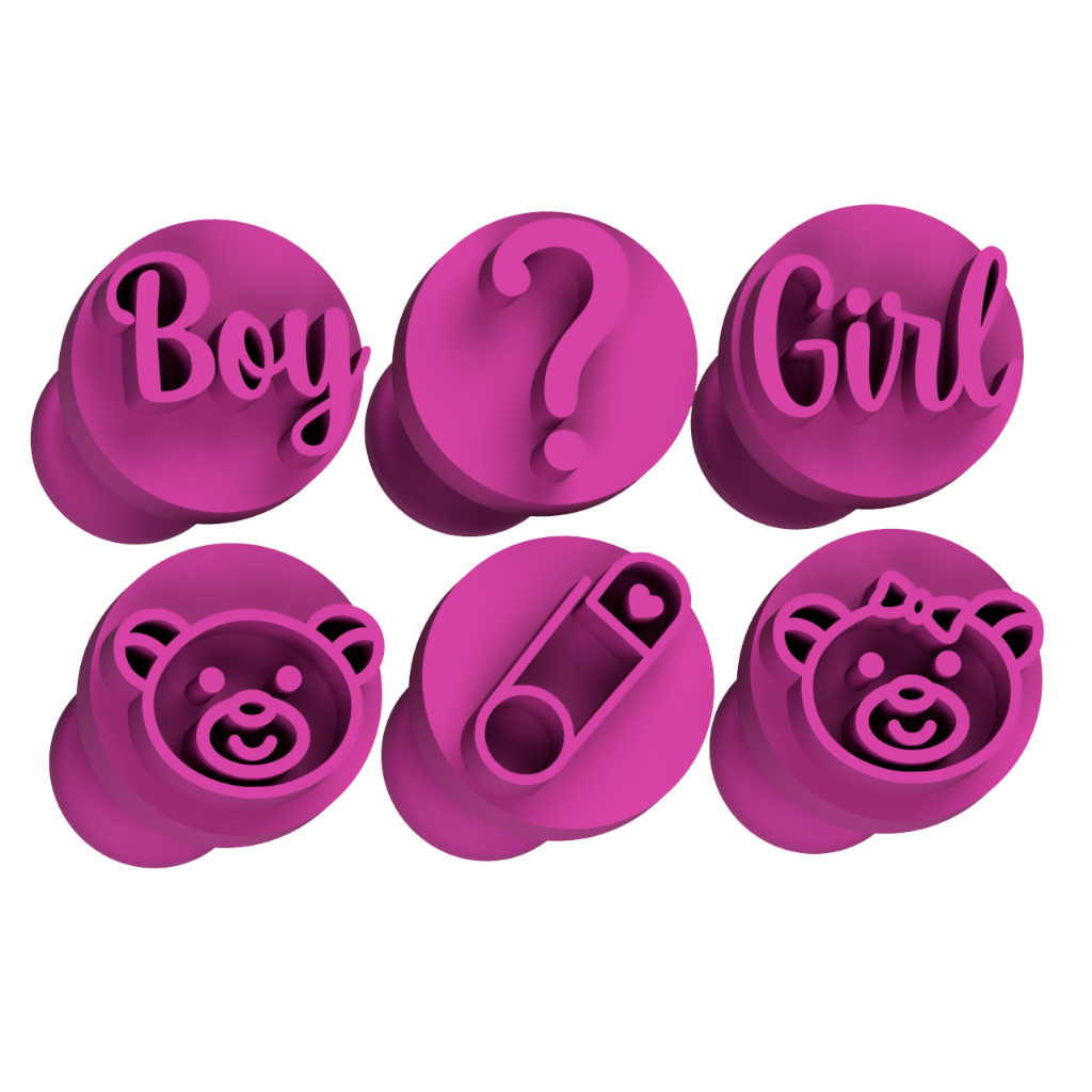 Kit 6 Carimbos para Doces Chá Revelação Bebê Brigadeiros Confeitaria