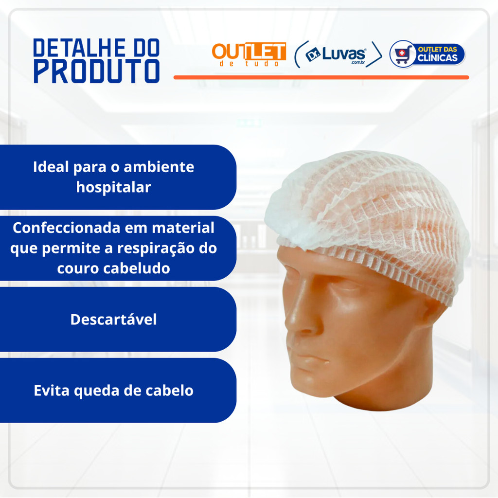 500un Touca Descartável TNT Branca Sanfonada Com Elástico