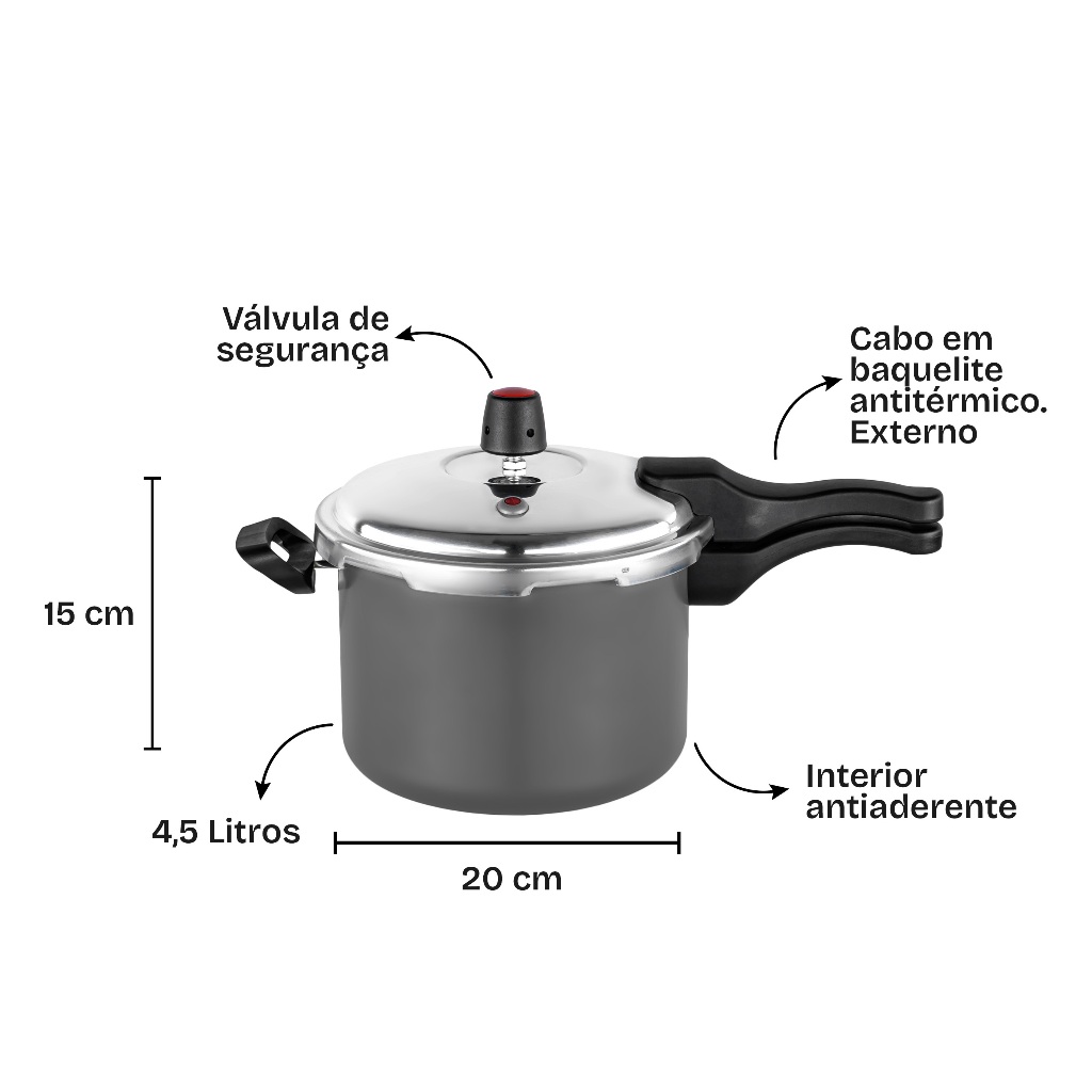Panela De Pressao Antiaderente Kit Convencional Tampa Vidro