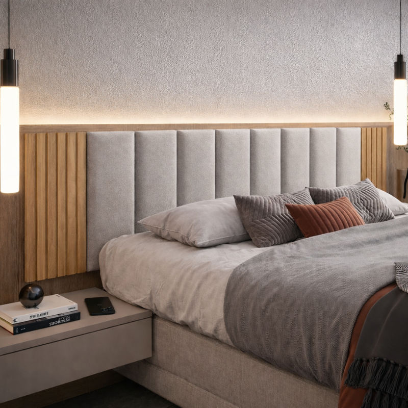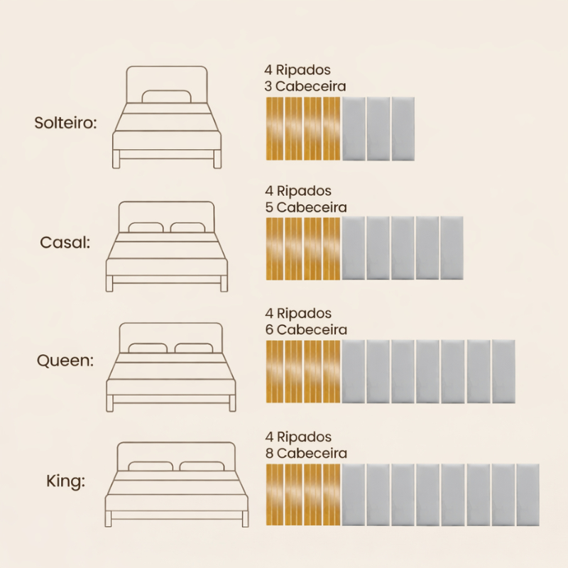 Kit Até 12 Peças Cabeceira Estofada + Ripado Premium Modular Cama Box Completo