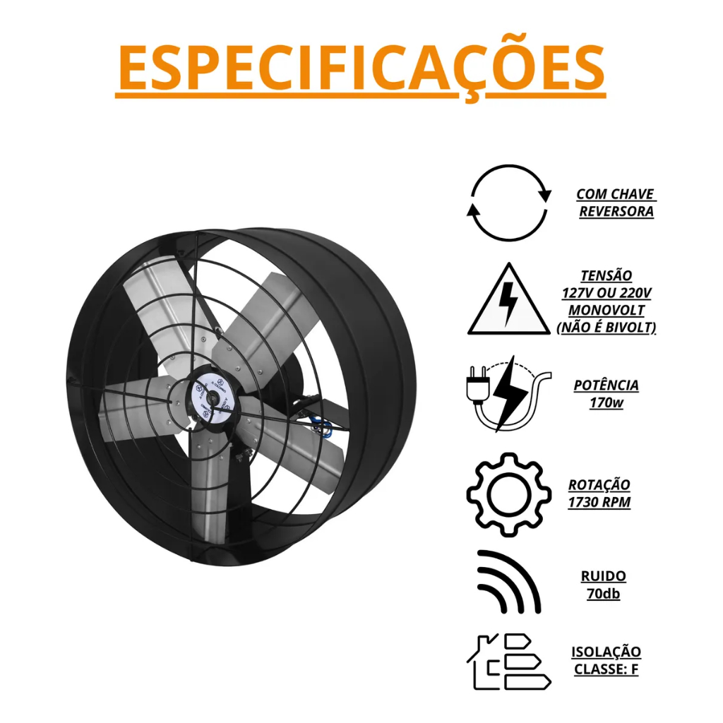 Exaustor Industrial 40 cm Blindado – Ventilador De Alta Vazão Alto Desempenho