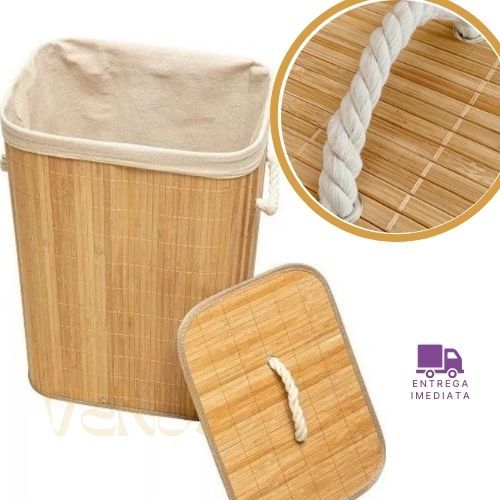 Cesto de Bambu com Tampa e Forro Dobrável e Resistente