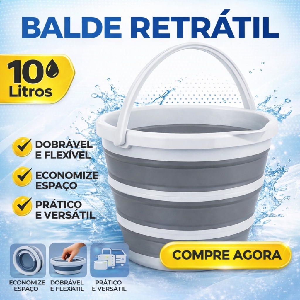 Balde Dobrável 10 Litros Retrátil de Silicone Dobrável Flexível Com Alça Lavanderia Multiuso