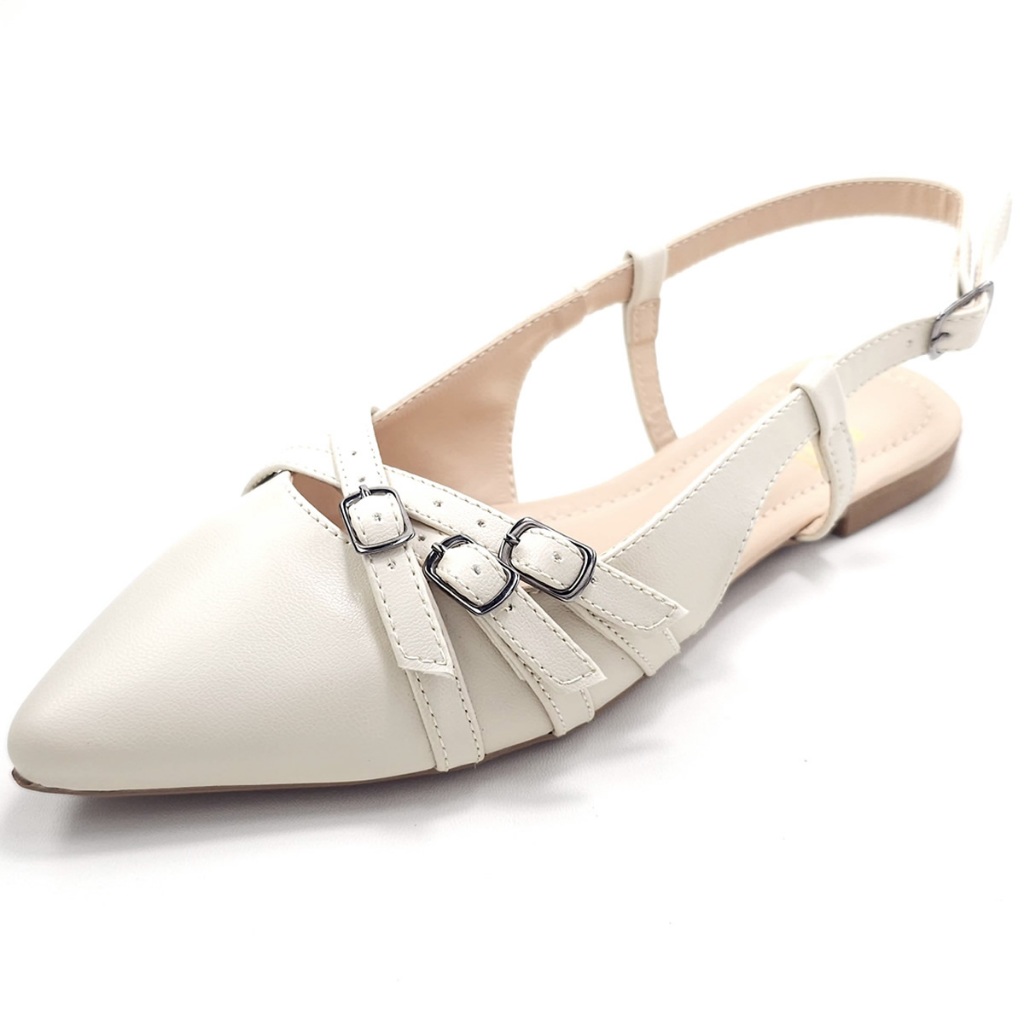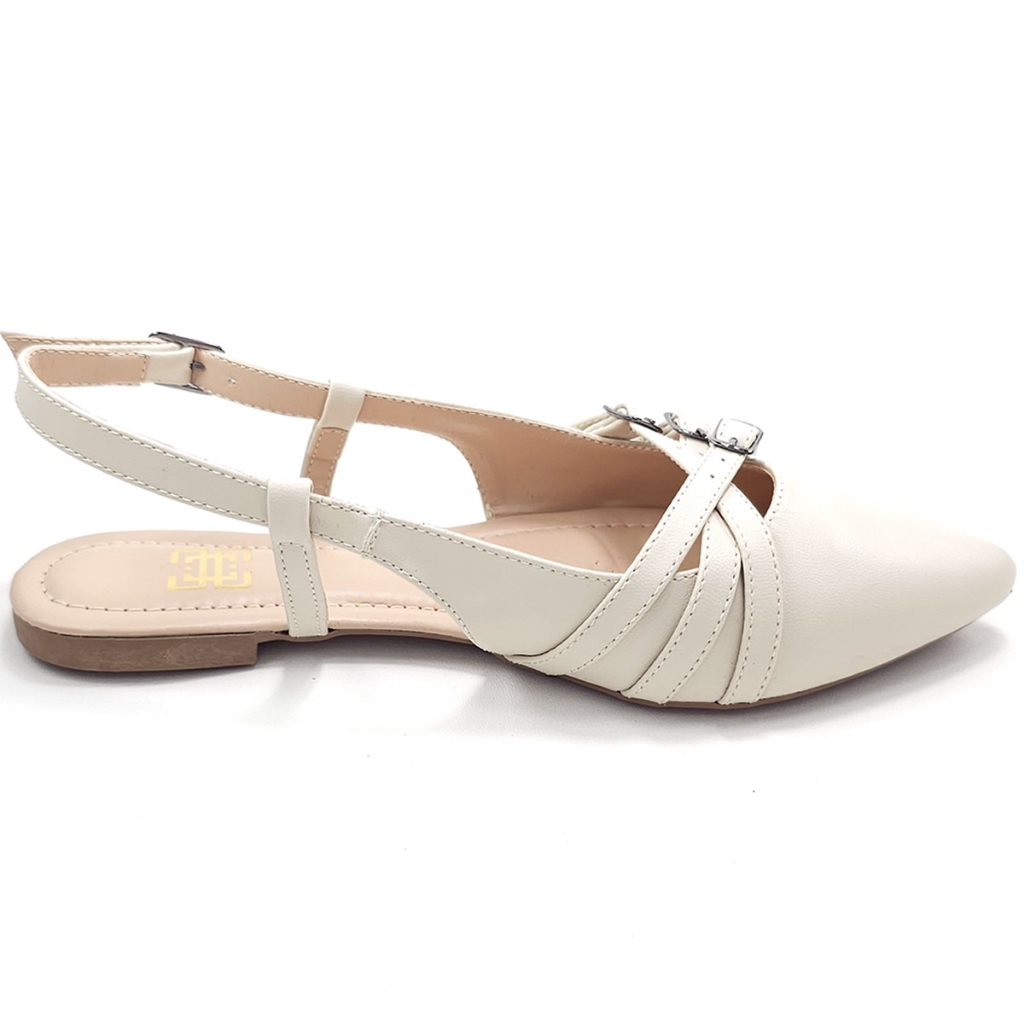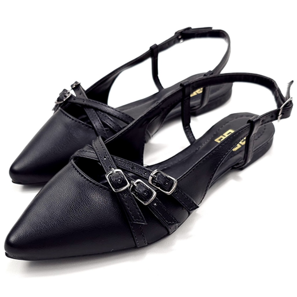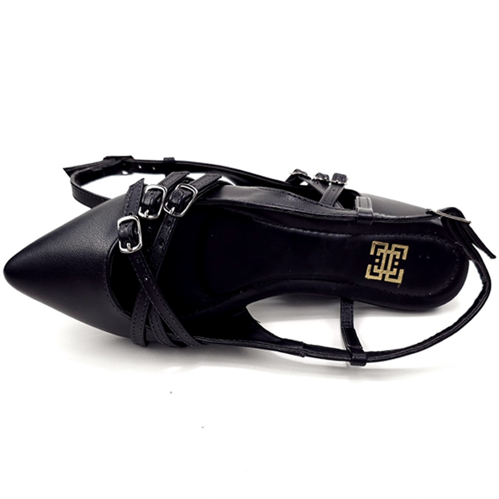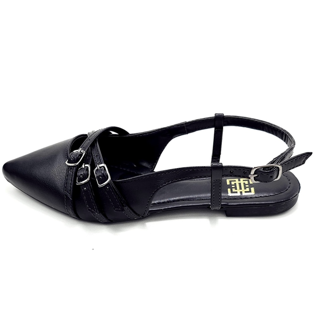 Slingback Feminino Rasteira Enfeite Fivelas em Metal