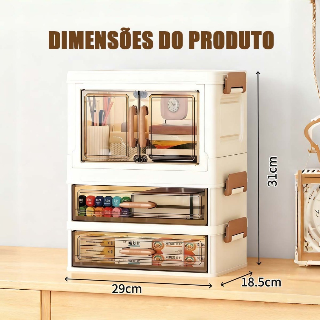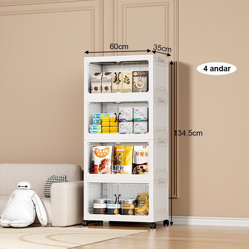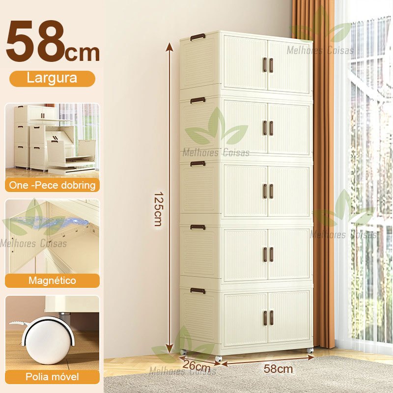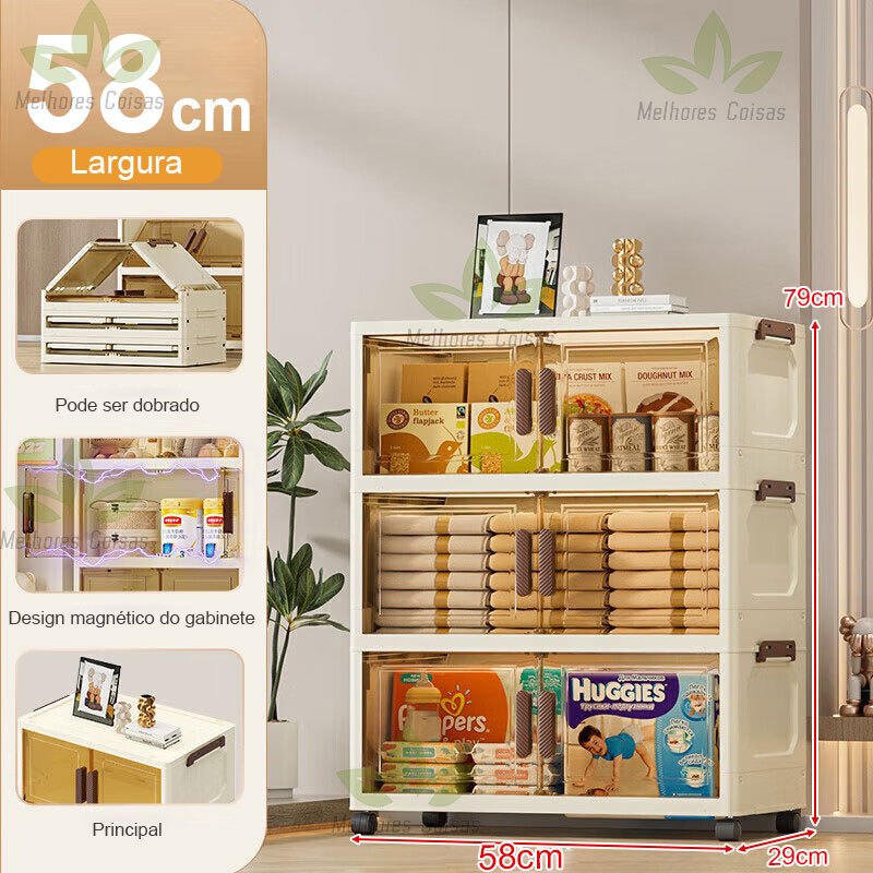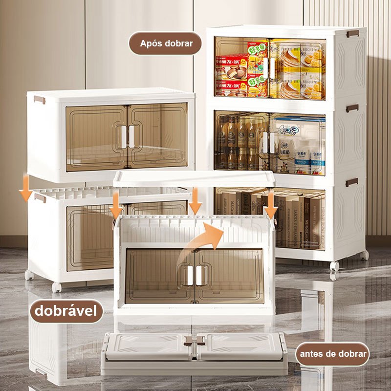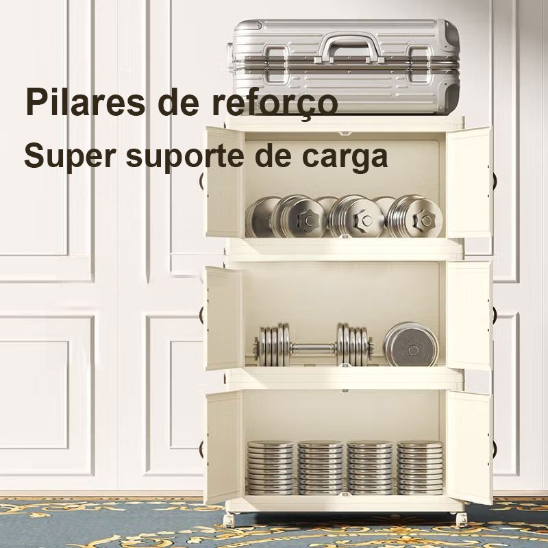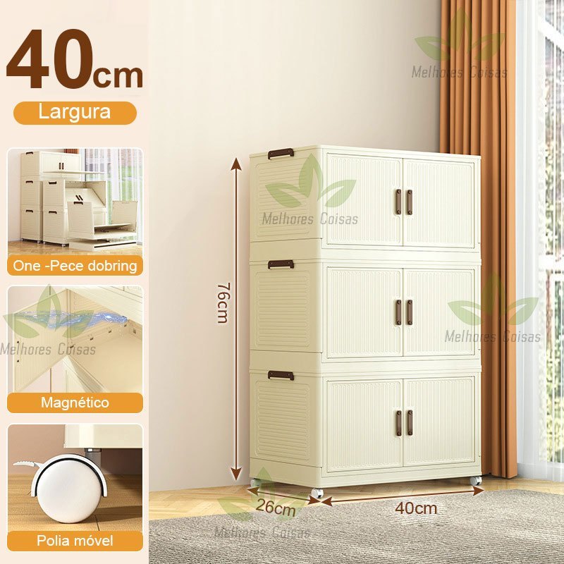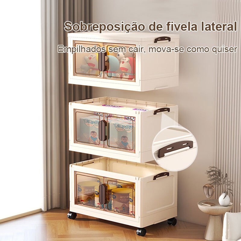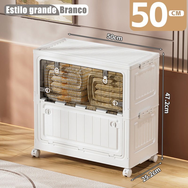 caixa organizadora armario armazenamento dobrável empilhavel com porta rodinhas multiuso 3 portas