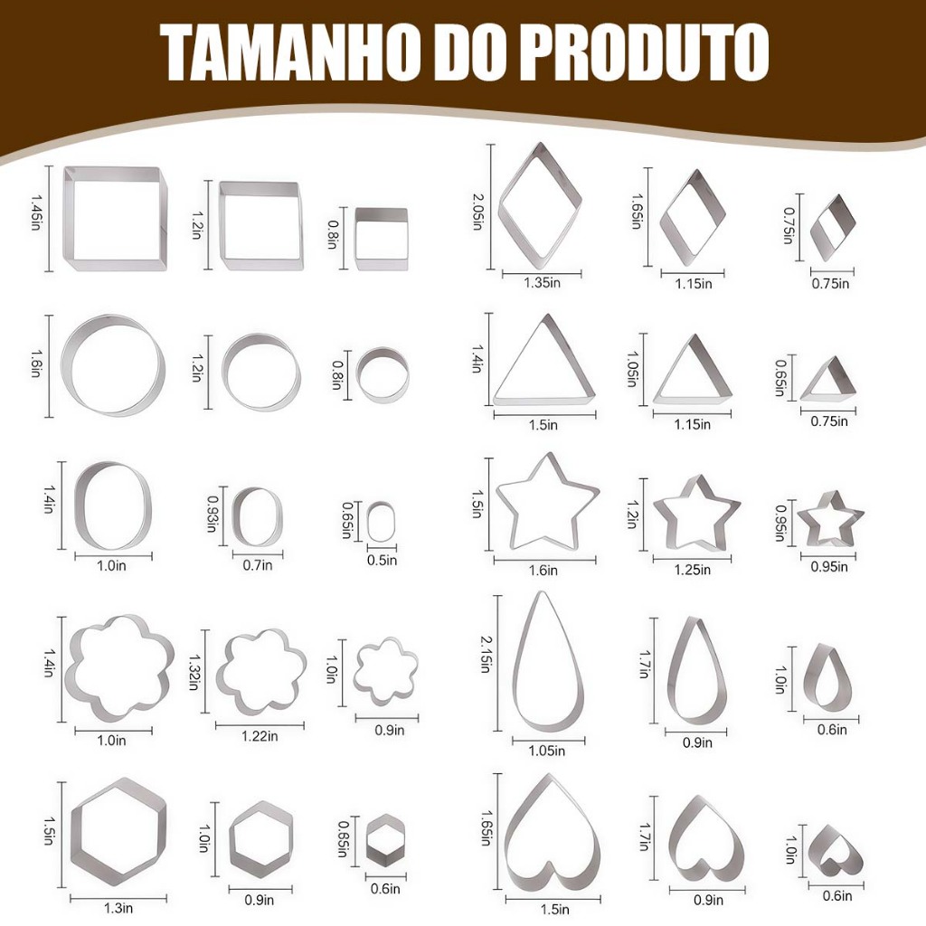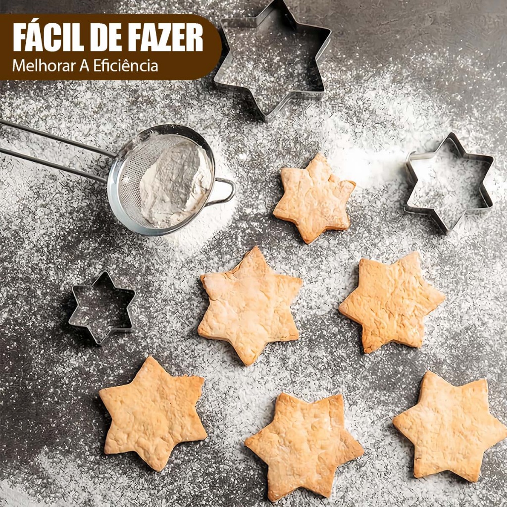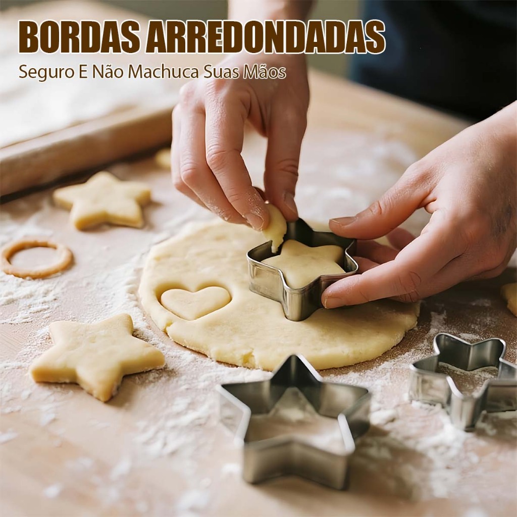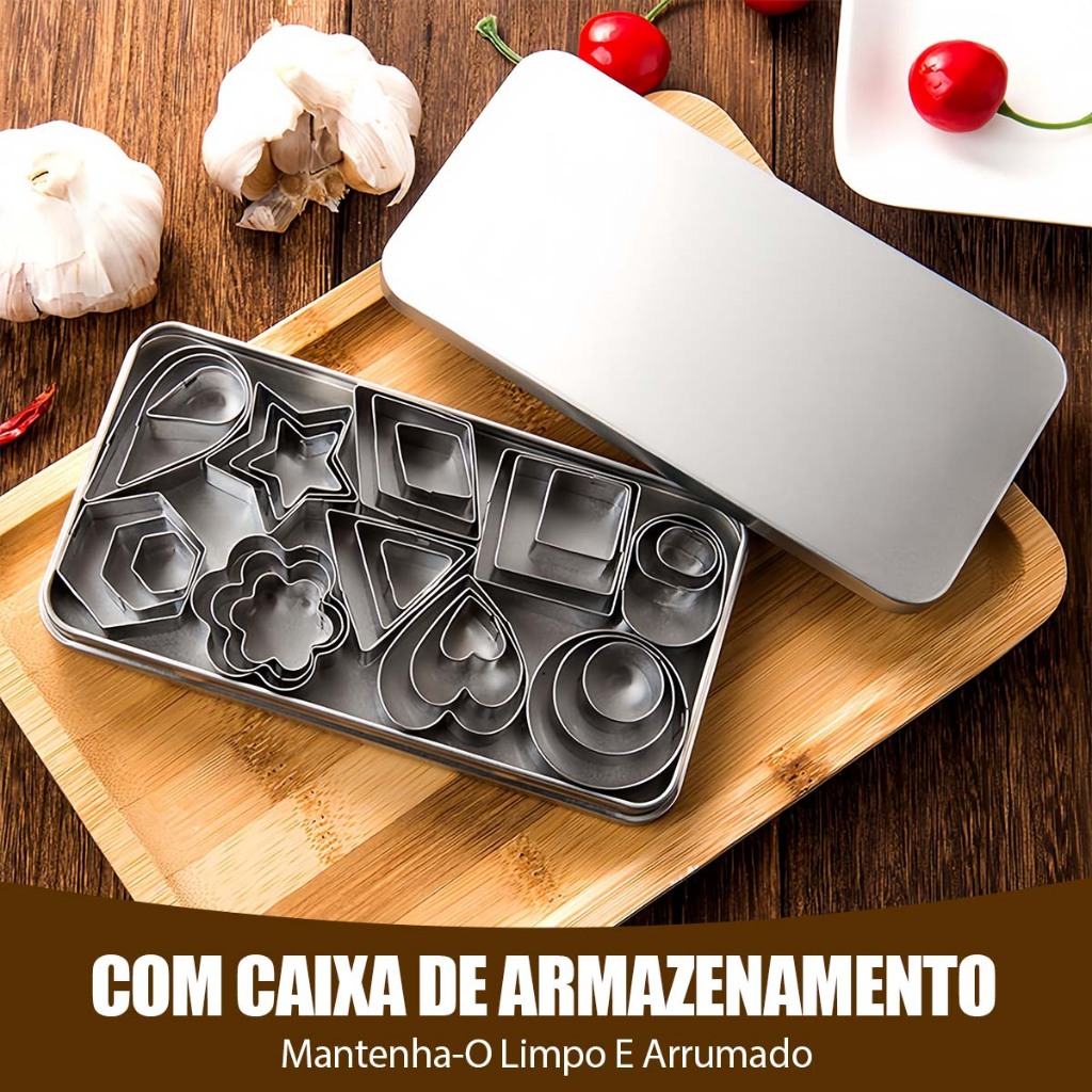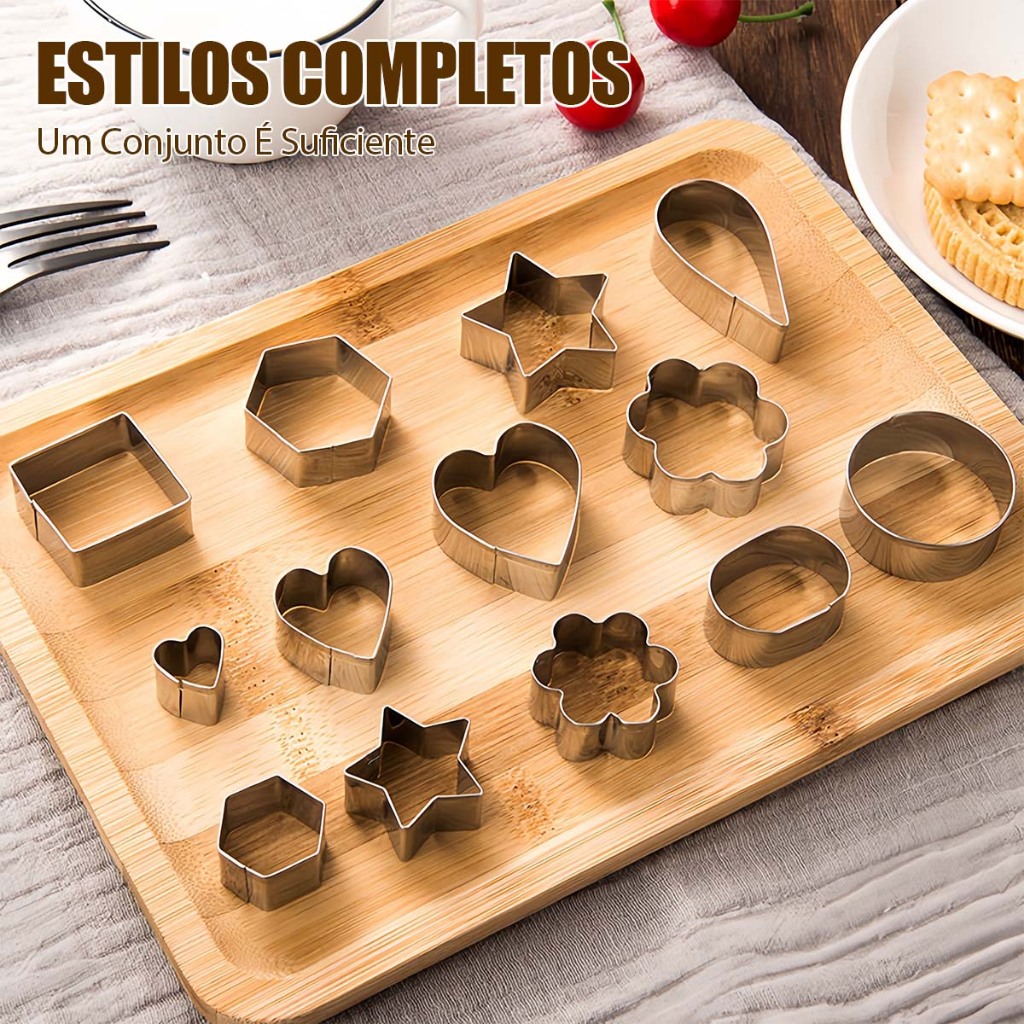 Cortador de Biscoito Legumes Frutas Molde Confeitaria Estrela Coração Aço Inox