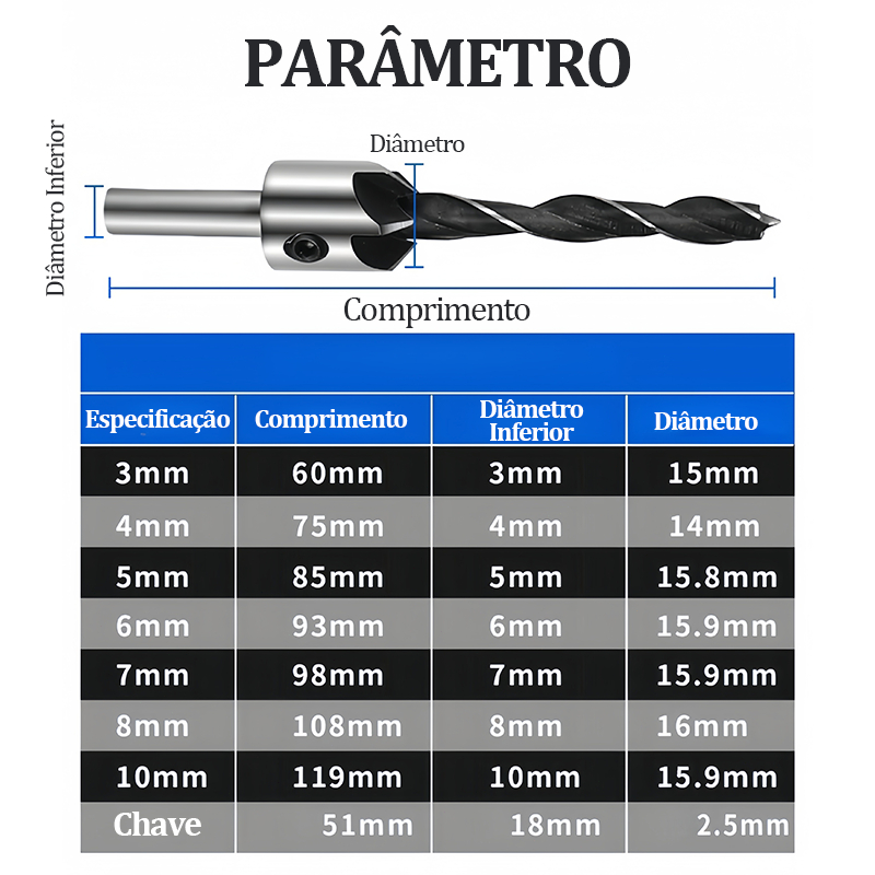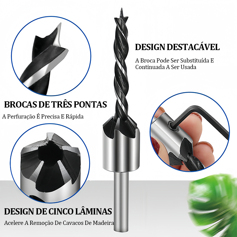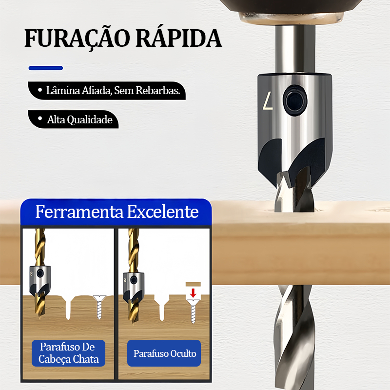 Jogo Broca Escariadora Madeira Piloto must-have de carpintaria