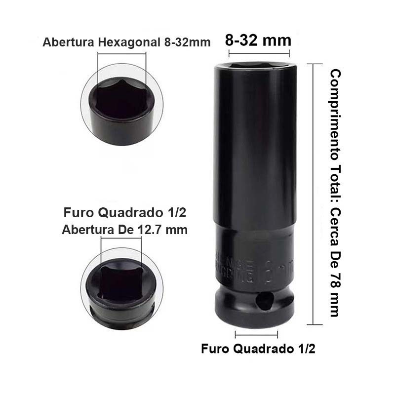 Jogo de soquetes de impacto longo Black Deep Box Tool Set 8mm - 24mm
