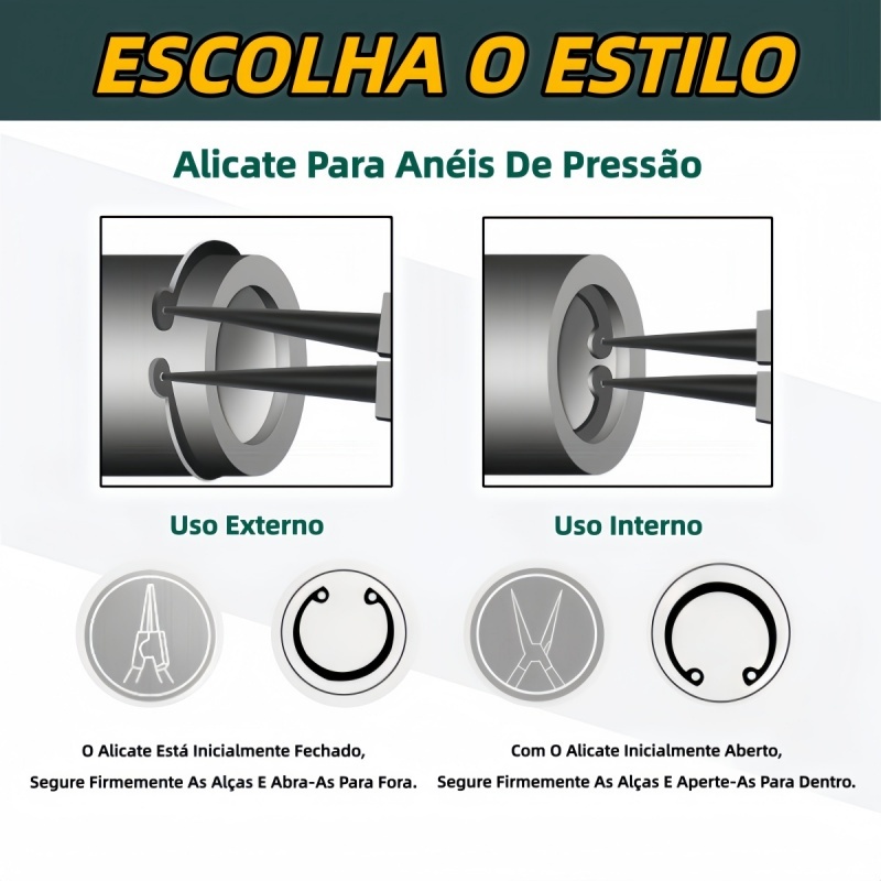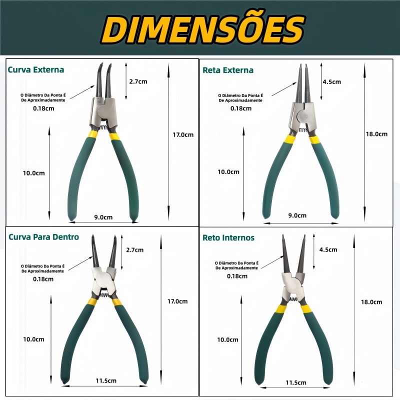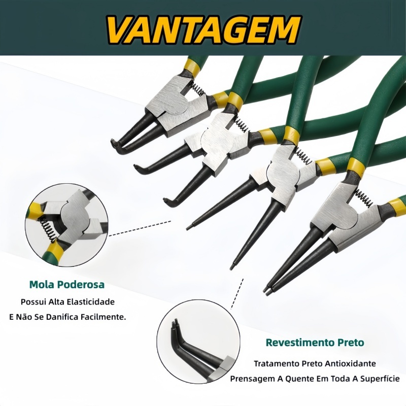 Jogo 4 Alicate para Anéis Profissional Trava Extrator Externo e Interno Bico Curvo e Reto