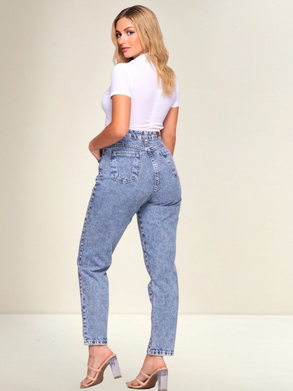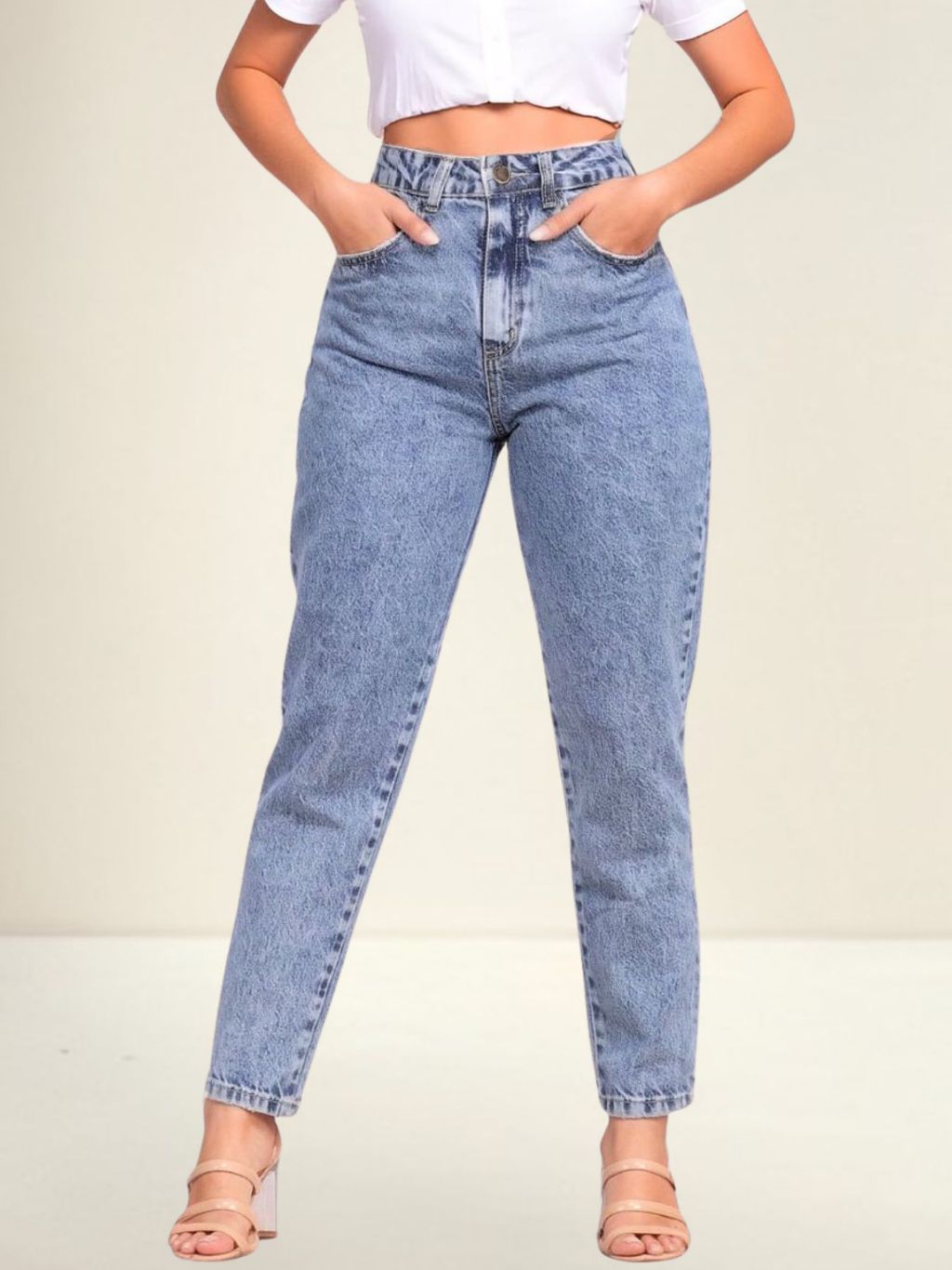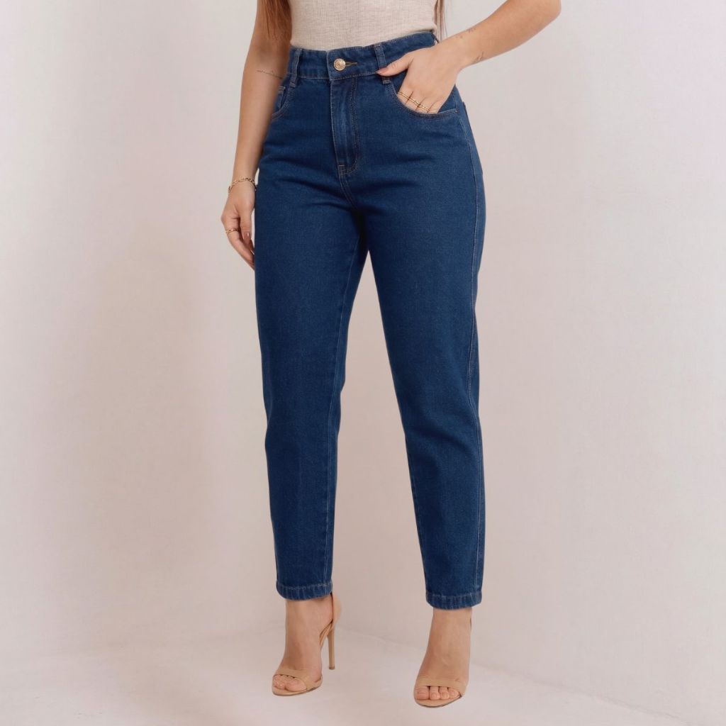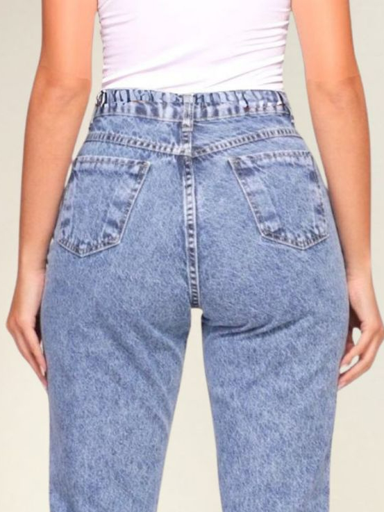Calça Mom Jeans Cintura Alta Feminina Levanta bumbum 100% Algodão Marmorizada Premium
