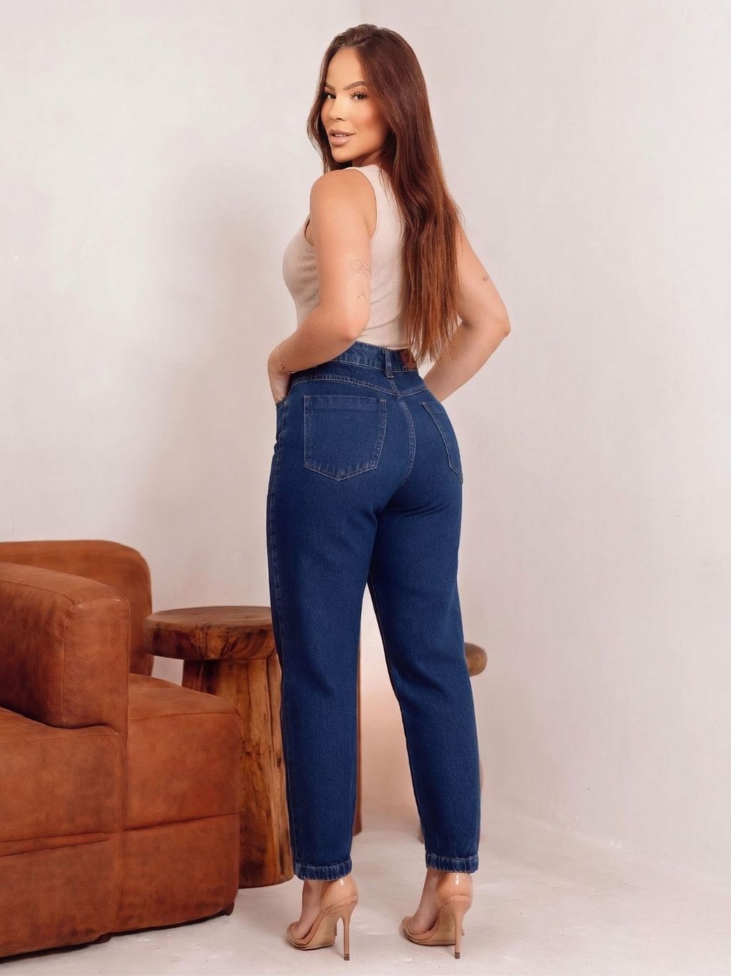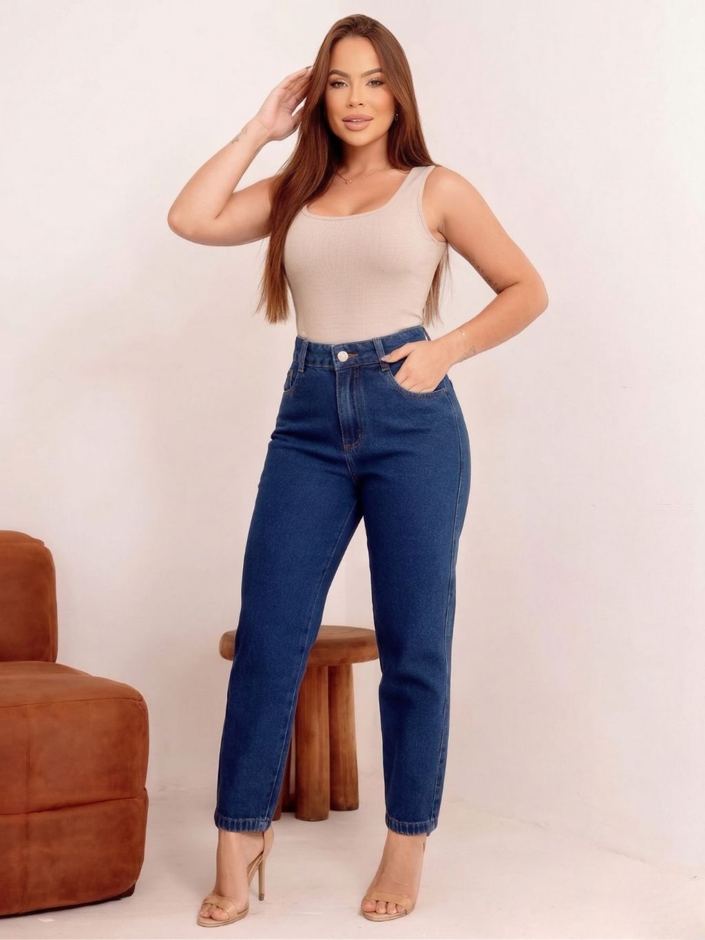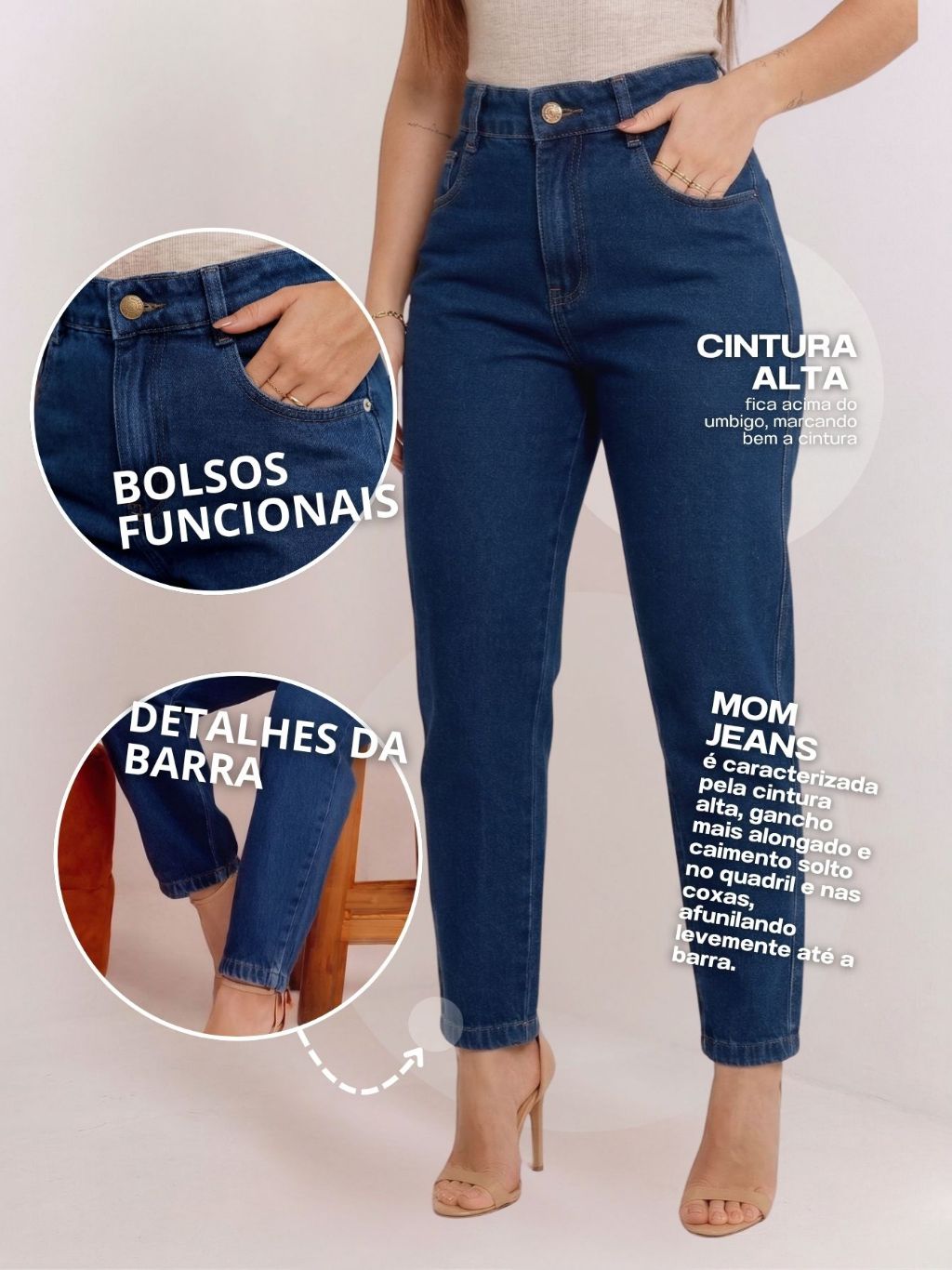 Calça Mom Jeans Cintura Alta Feminina Levanta bumbum 100% Algodão Marmorizada Premium
