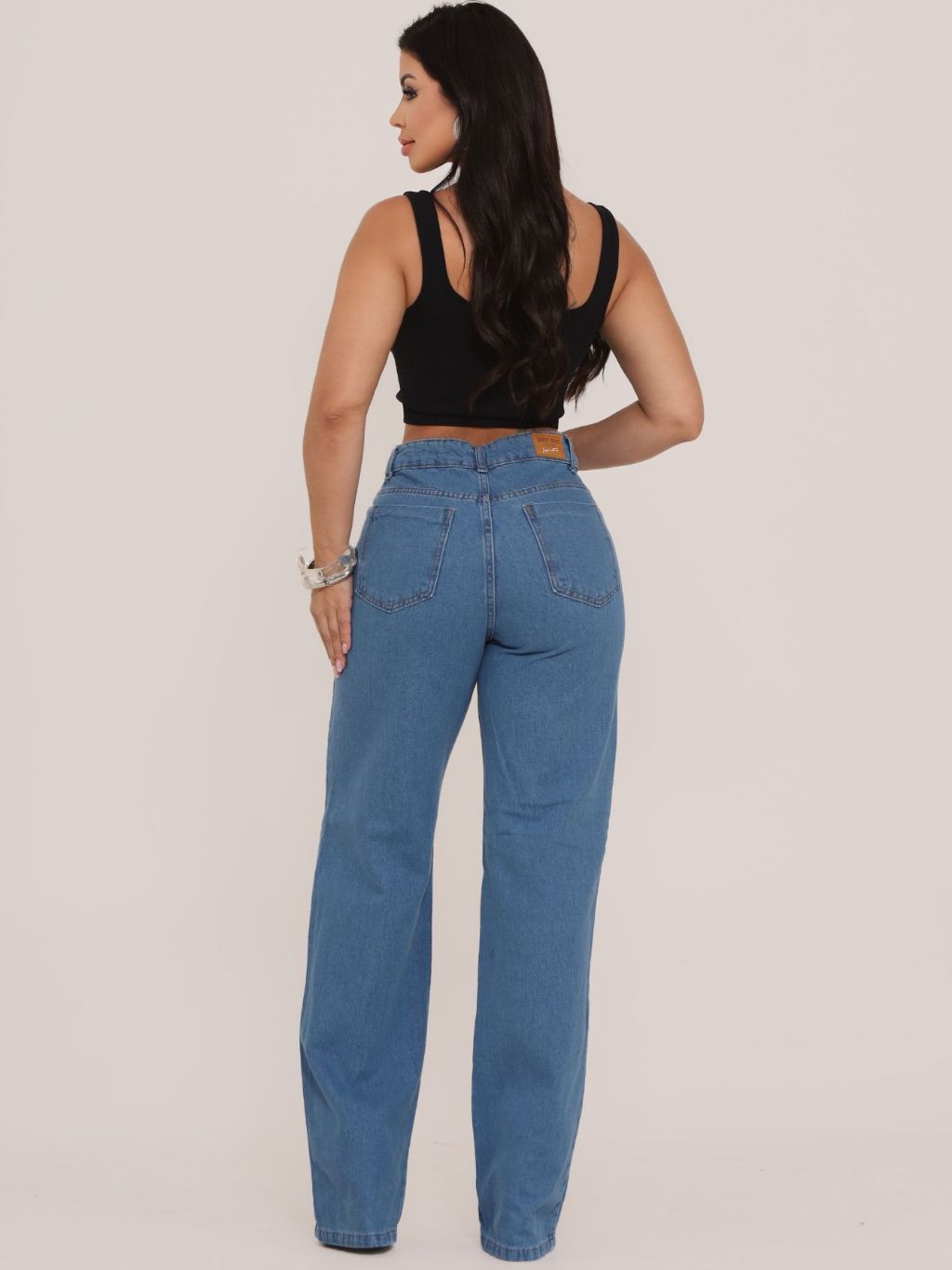 Calça Jeans Feminina Wide Leg Cintura Alta Tecido Grosso Pantalona Premium 100% Algodão Blogueira