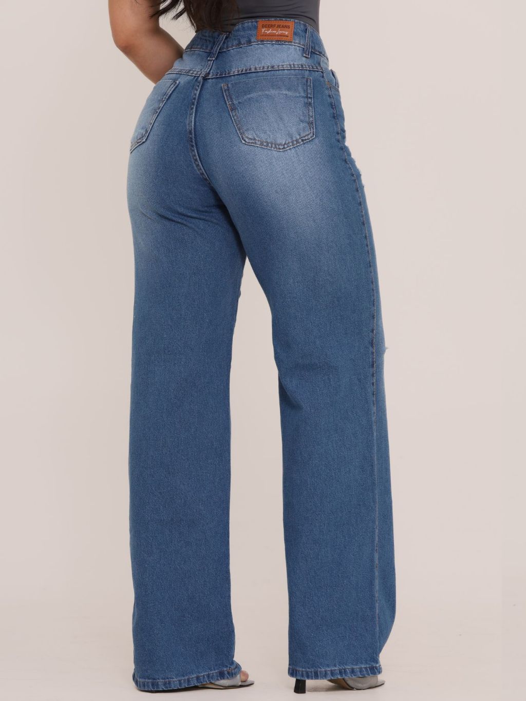 Calça Jeans Feminina Wide leg Gringa Pantalona Cintura Alta perna larga Blogueira Envio Imediato