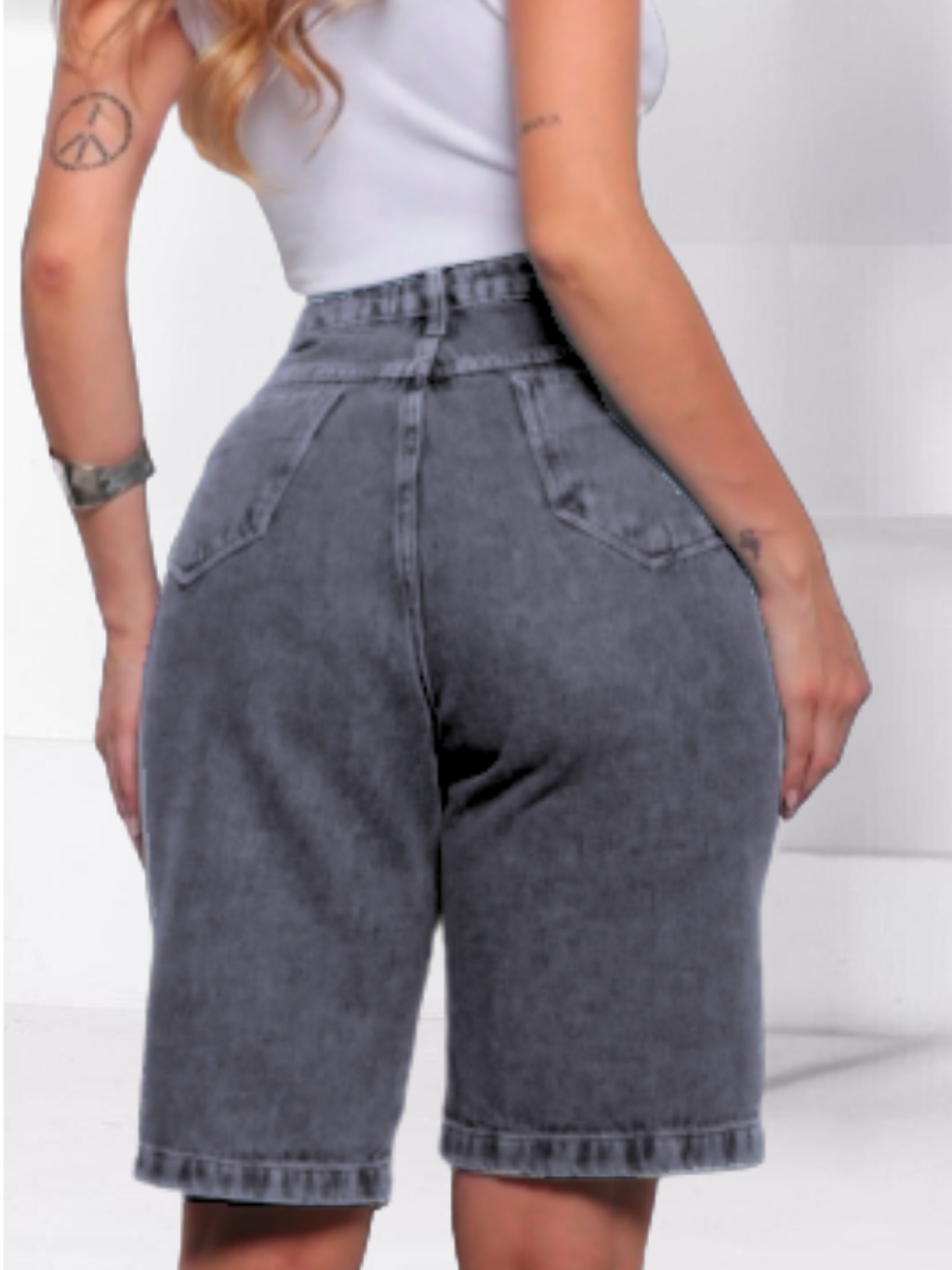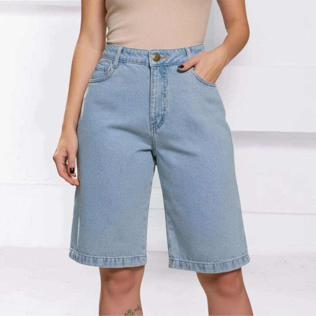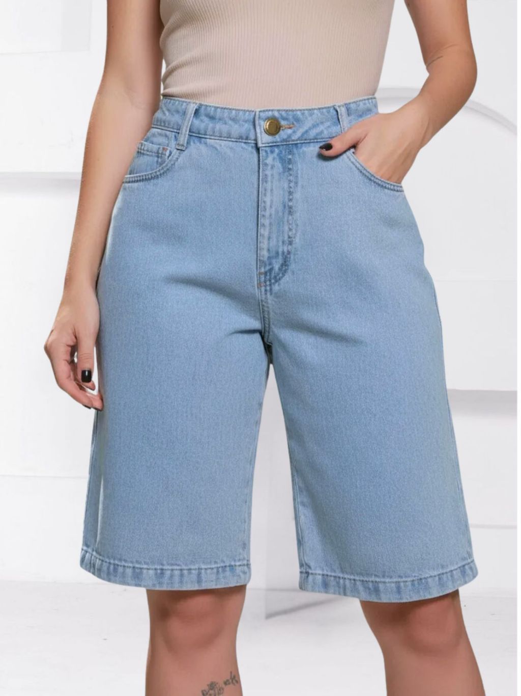 Bermuda feminina Jorts sem Lycra 100% Algodão Cintura Alta Meia coxa Ciclista Jeans Premium Gringa