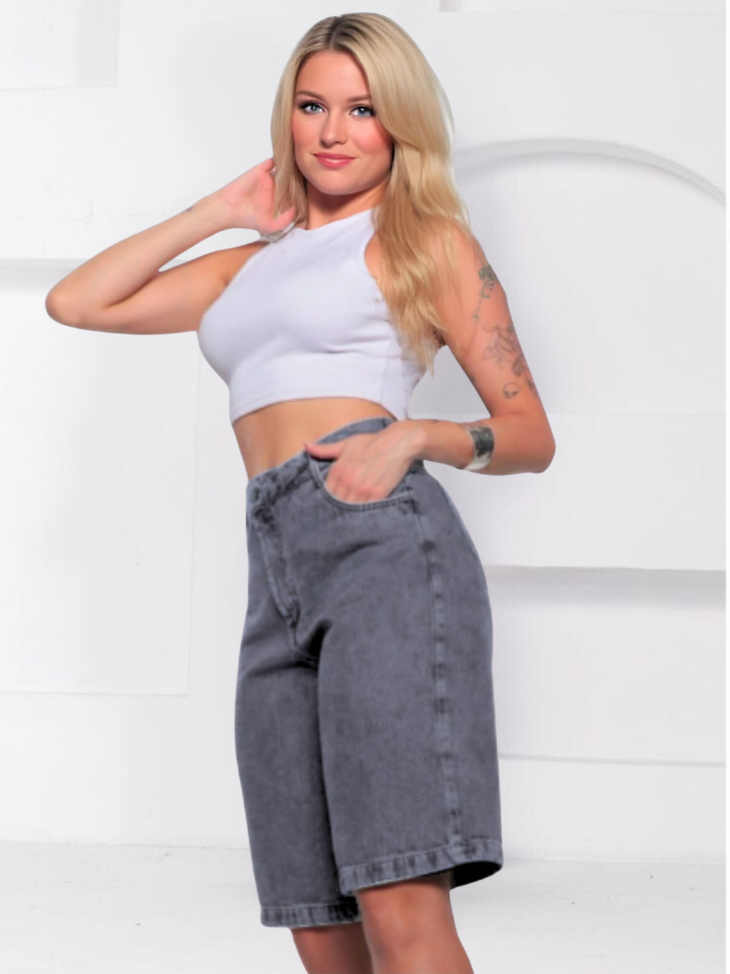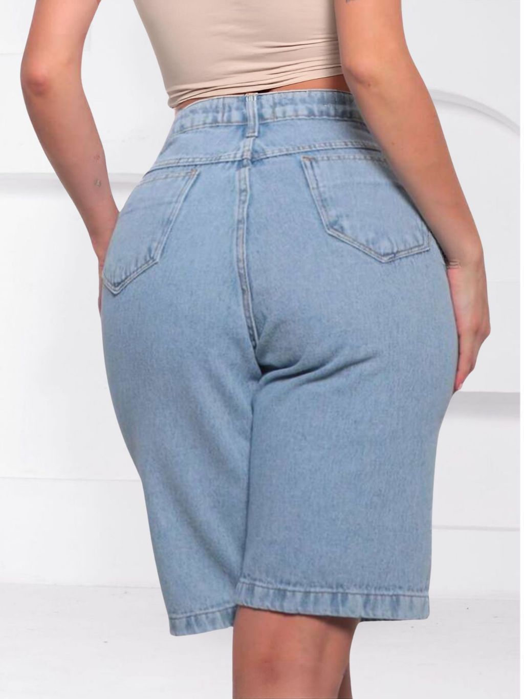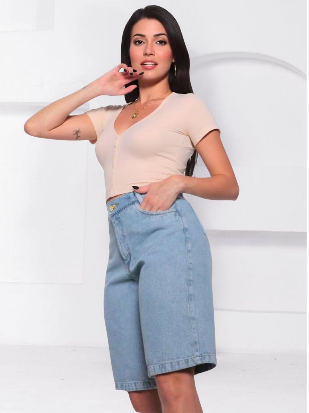 Bermuda feminina Jorts sem Lycra 100% Algodão Cintura Alta Meia coxa Ciclista Jeans Premium Gringa