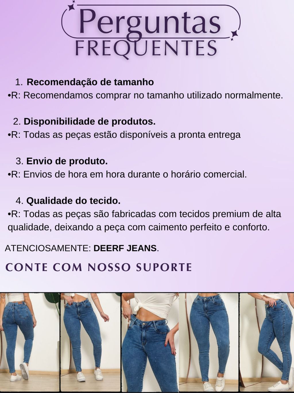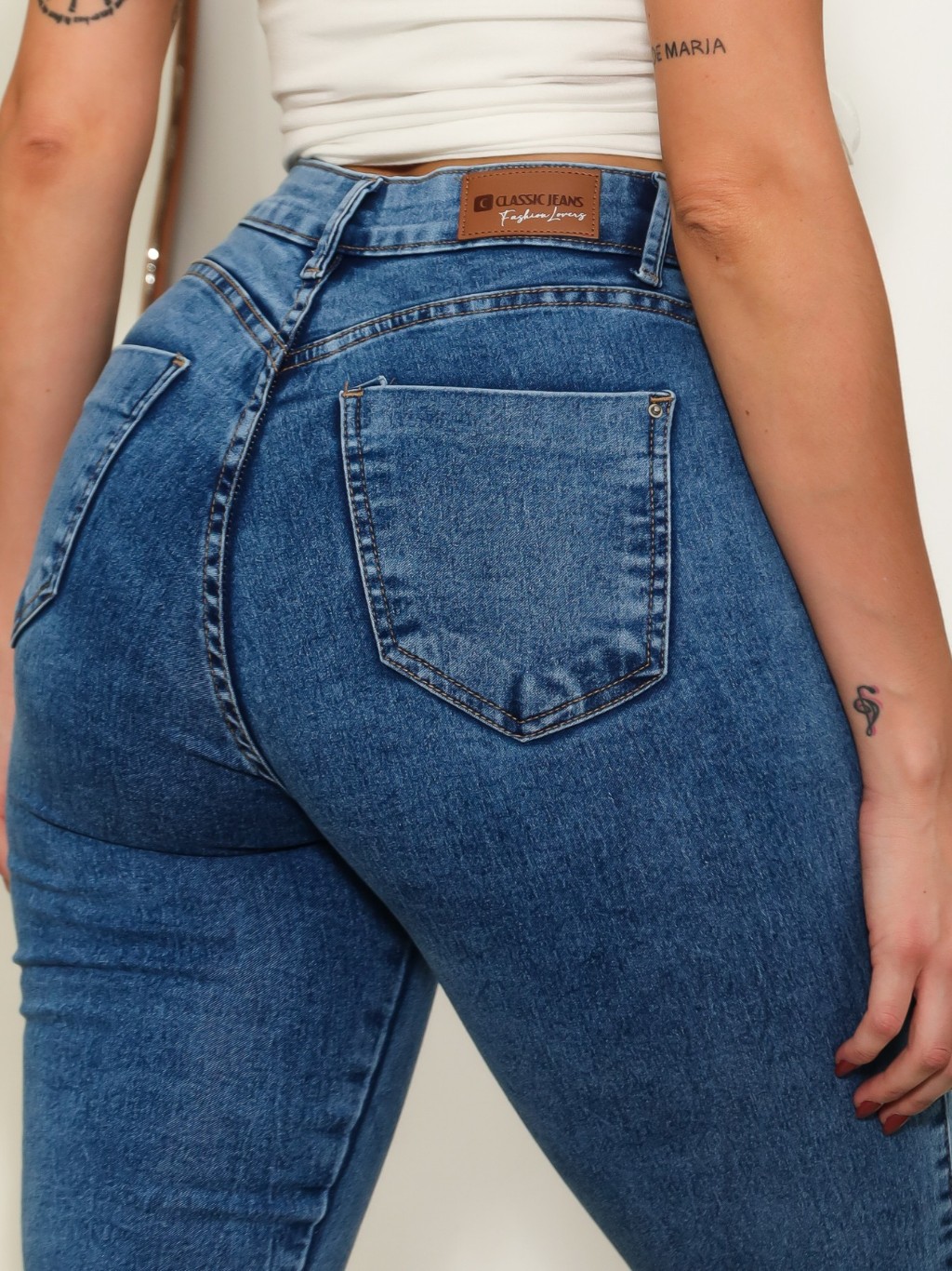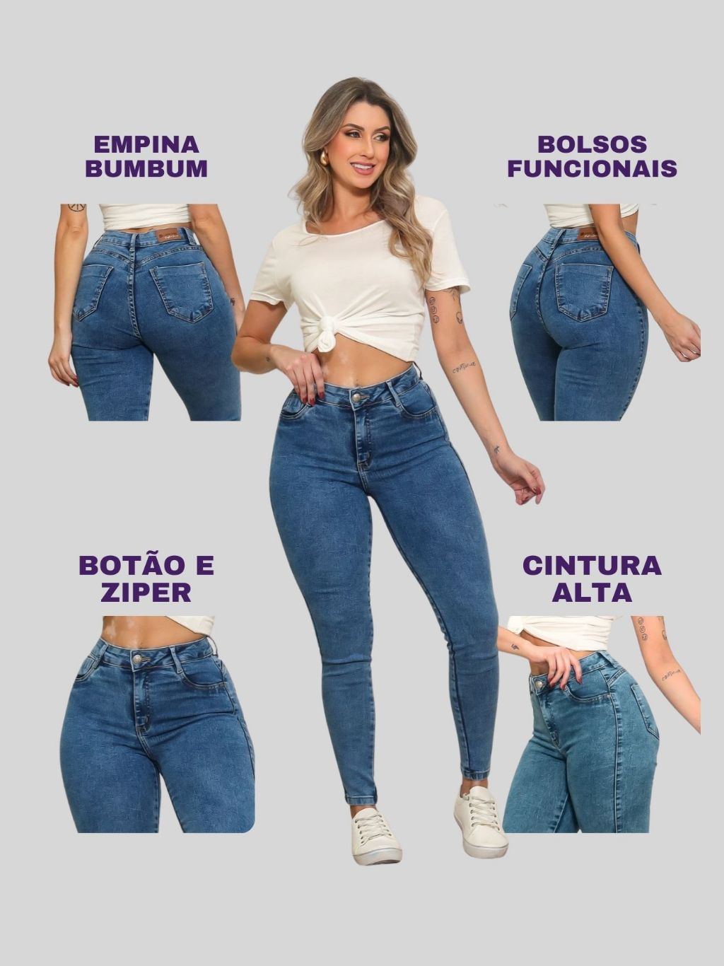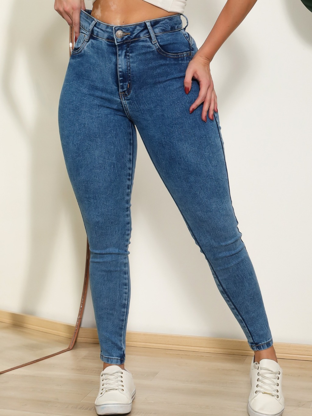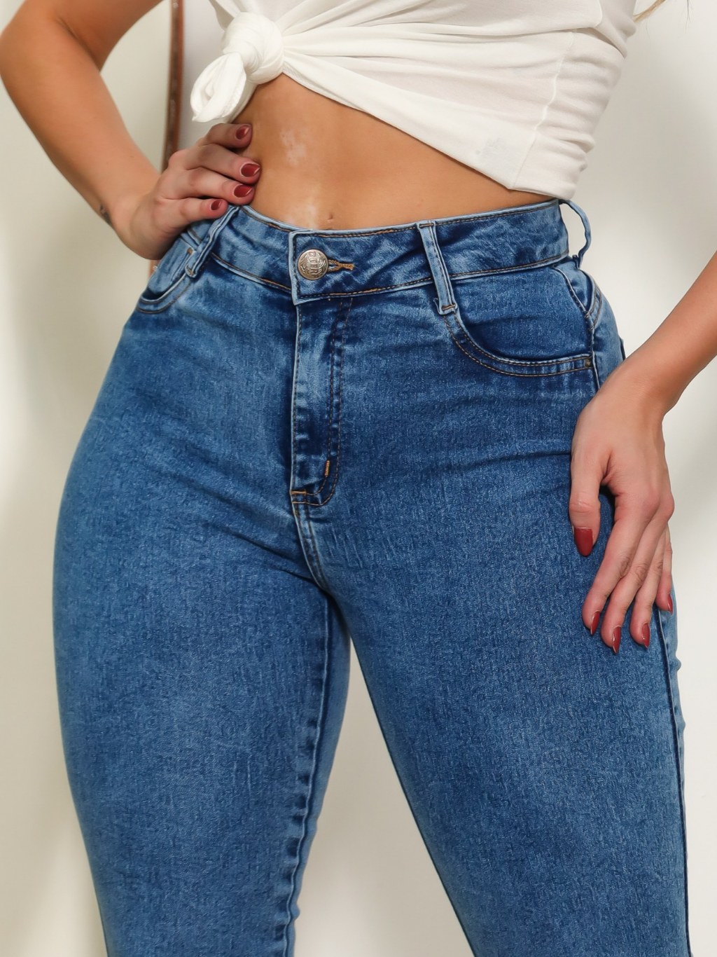 Calça jeans Feminina cós alto com lycra levanta bumbum lisa c/elastano modeladora premium