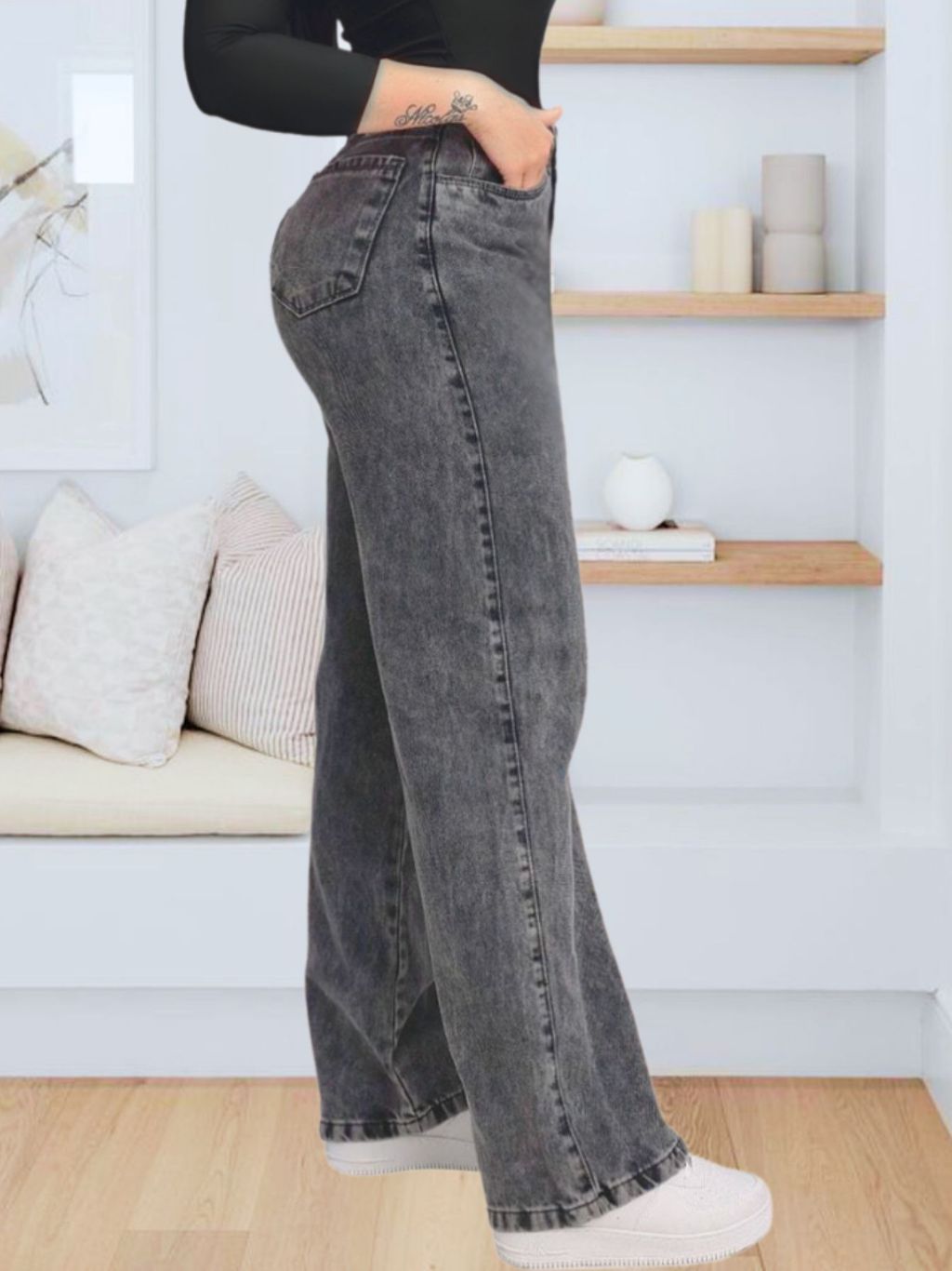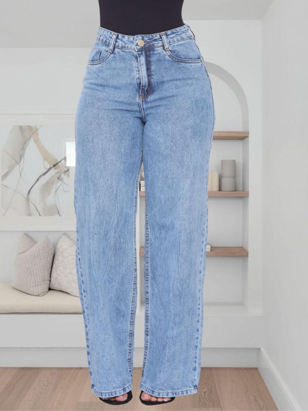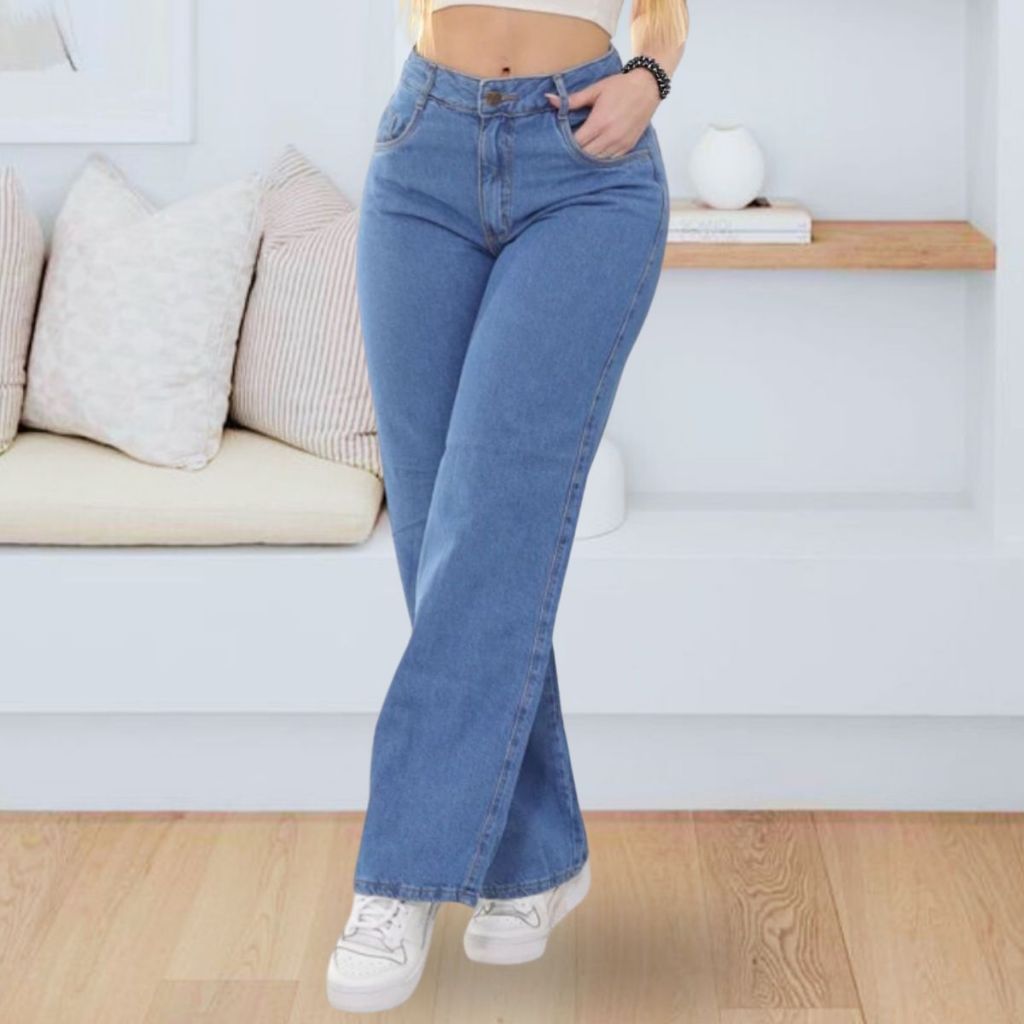 Calça Jeans Feminina Wide Leg Pantalona Cintura Alta premium Cós Alto tecido grosso lavagem gringa