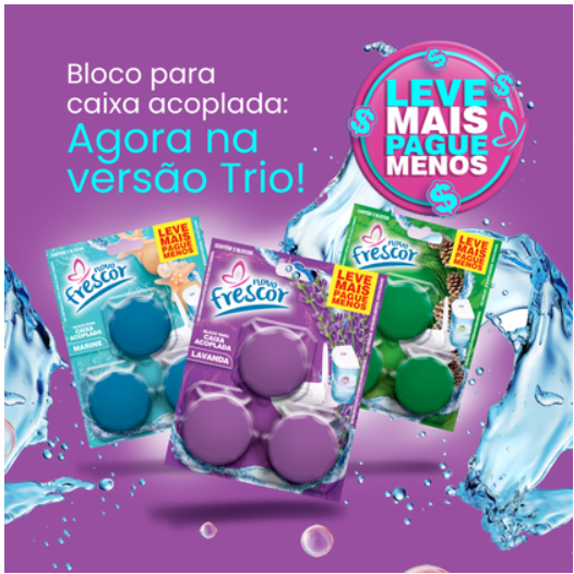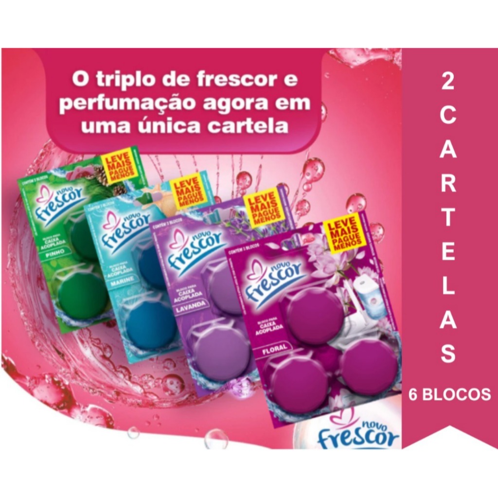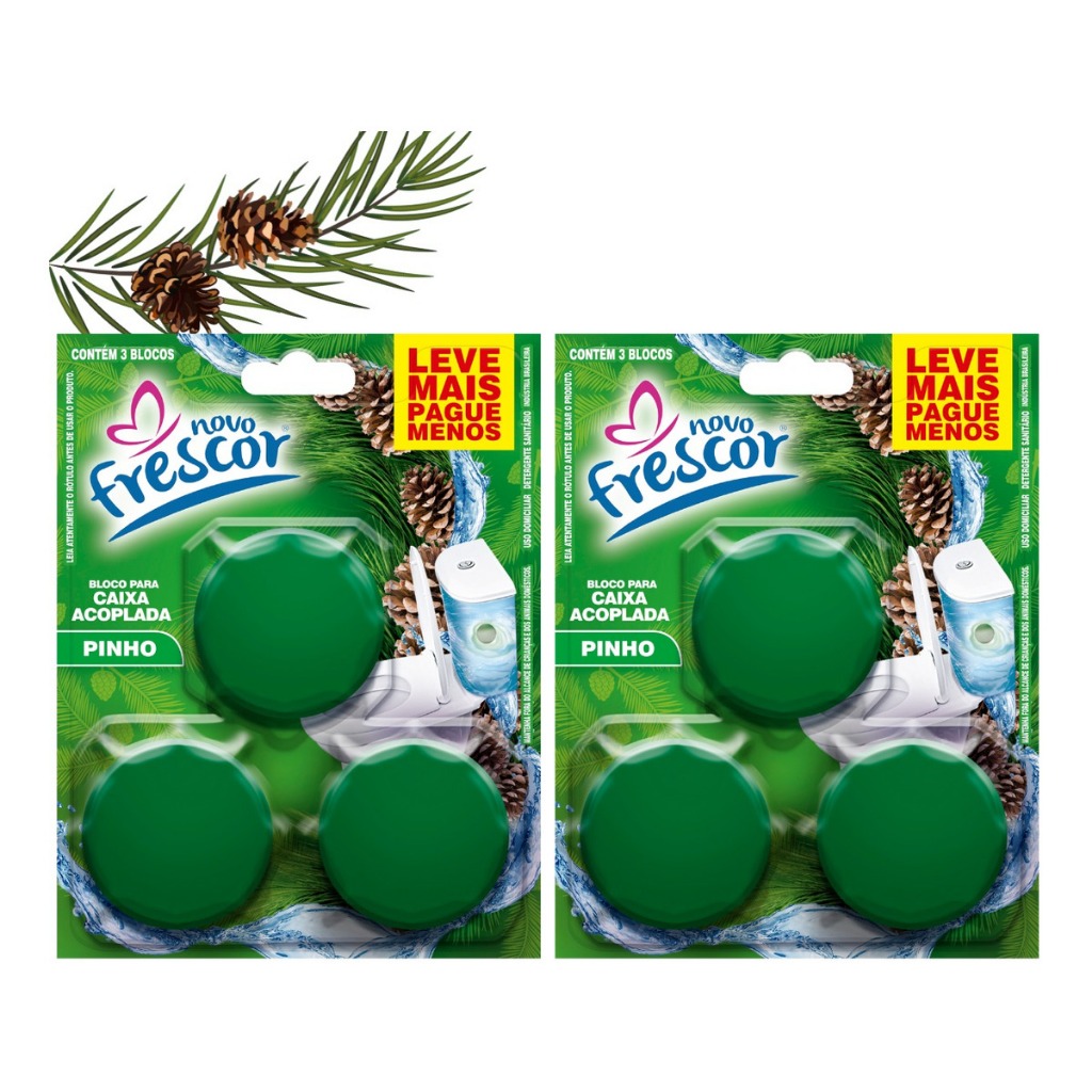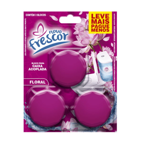 Conjunto 3 Blocos Para Caixa Acoplada 45g Novo Frescor Tablete Pastilha Sanitário 3 Blocos