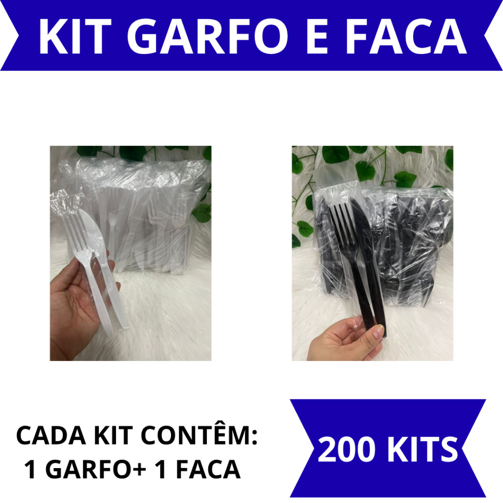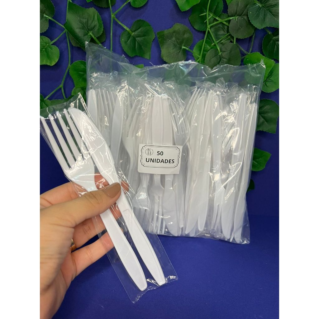 Kit garfo + faca descartável para refeição BRANCO / PRETO (reforçado) embalado individualmente