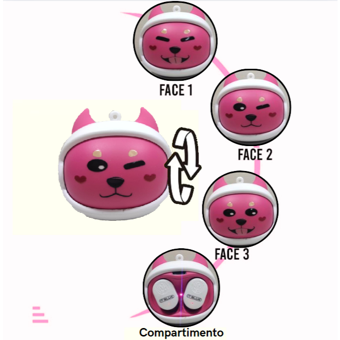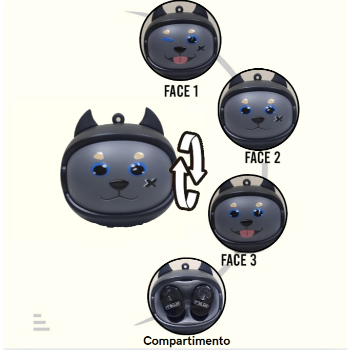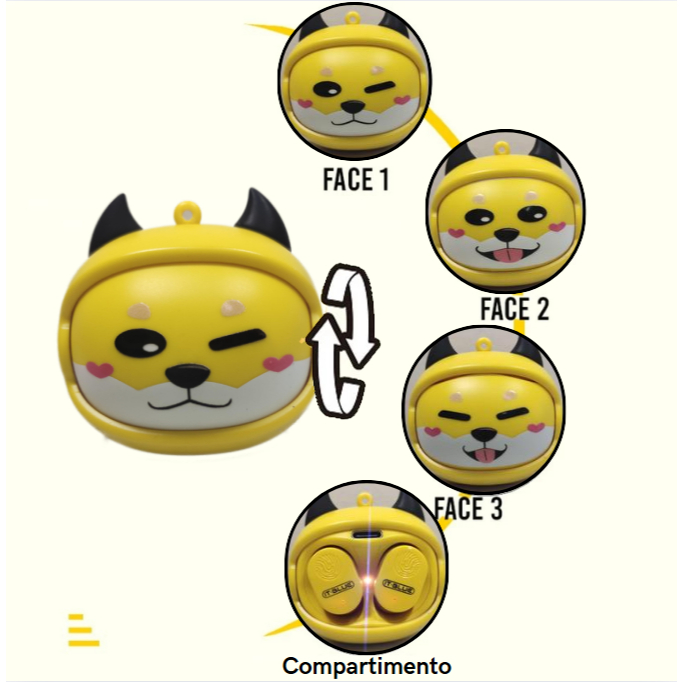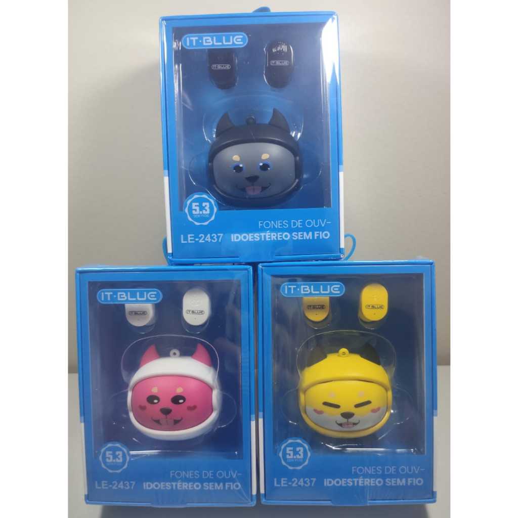 Fone Bluetooth com Diferentes 4 Rostos de Animal Diferentes/IT Blue LE-2437/3 Cores Diferentes 🐶