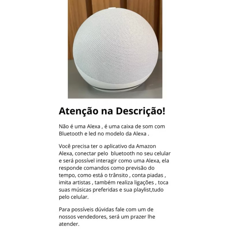 Caixa de som , modelo Alexa com comando de voz através app da Amazon e bluetooth.