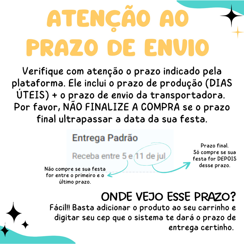 Sob encomenda: envio após 7 dias da compra