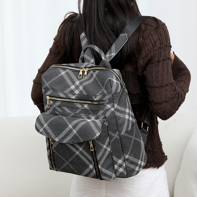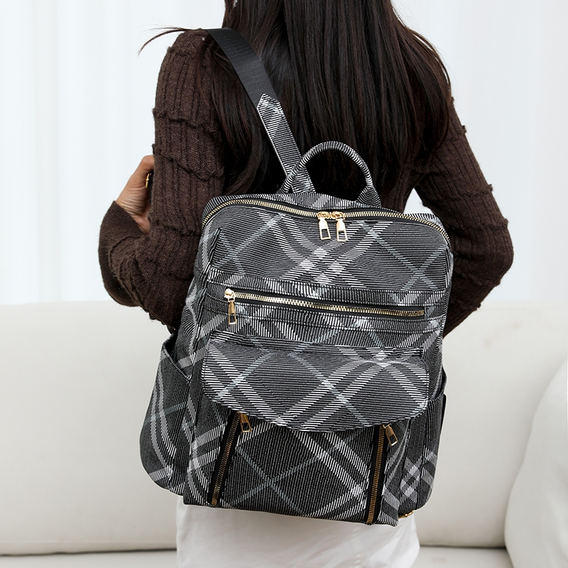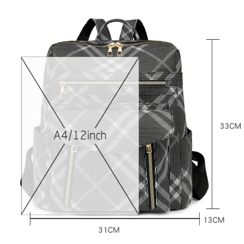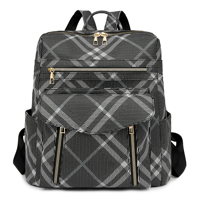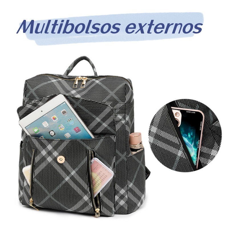 Mochila multifuncional impressa preta de couro PU para mulheres