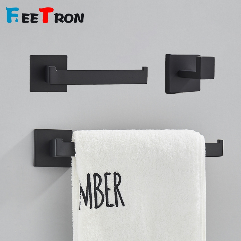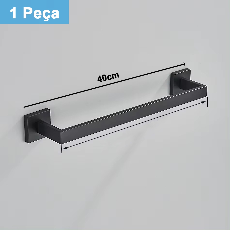 Suporte Banheiro Barra de Toalha Preto Aço Inox 304 Porta Papel Higiênico