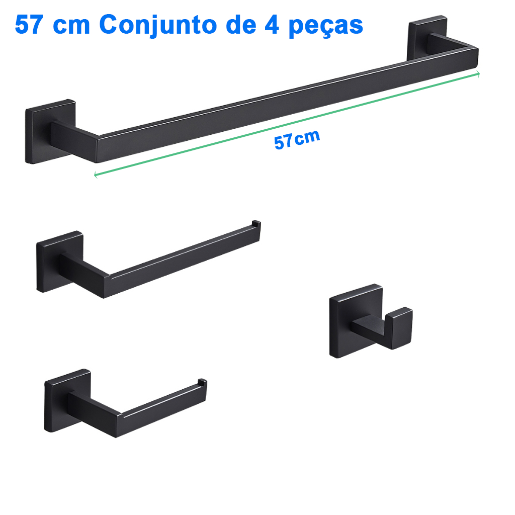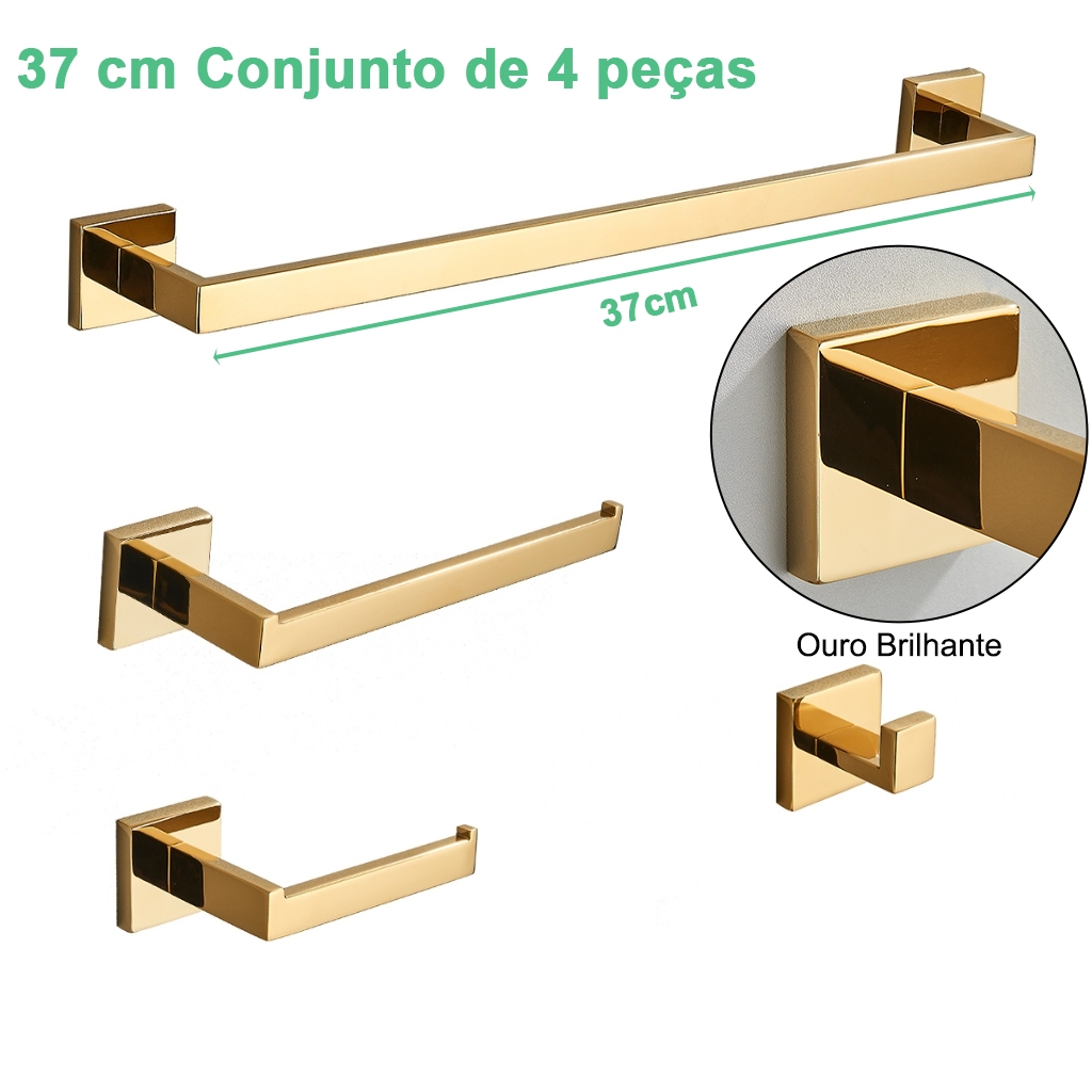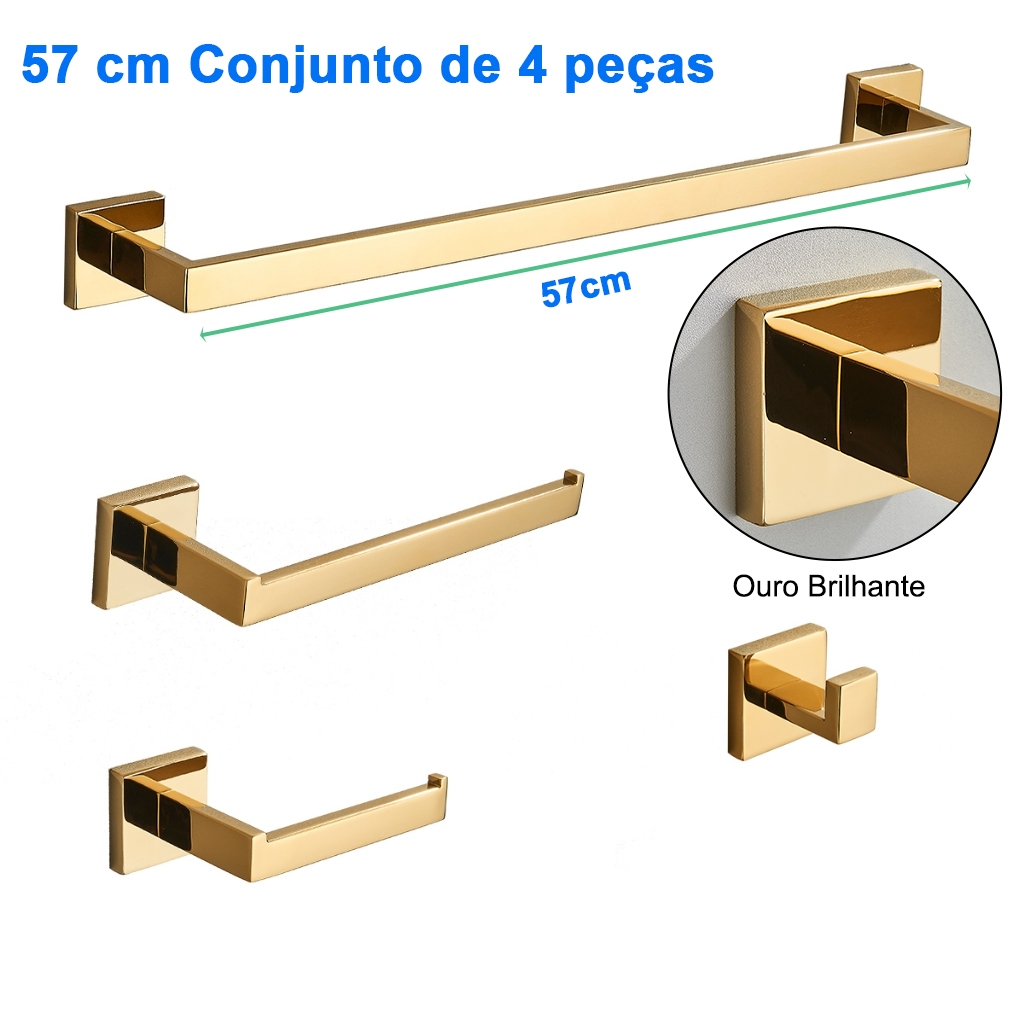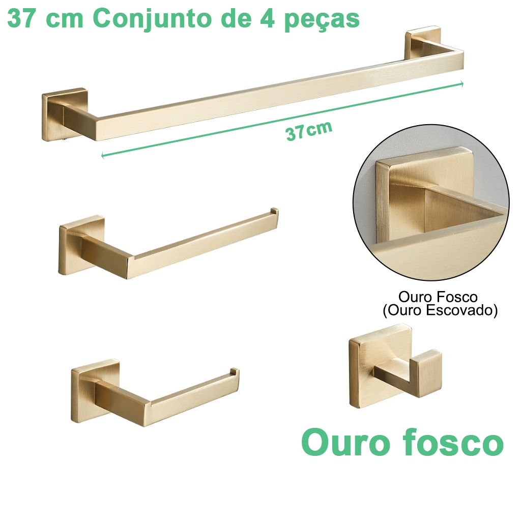 Kit Acessórios Para Banheiro 4 Peças Inox Quadrado 37cm/57cm Toalheiro De Banheiro Preto/Dourado/Prata
