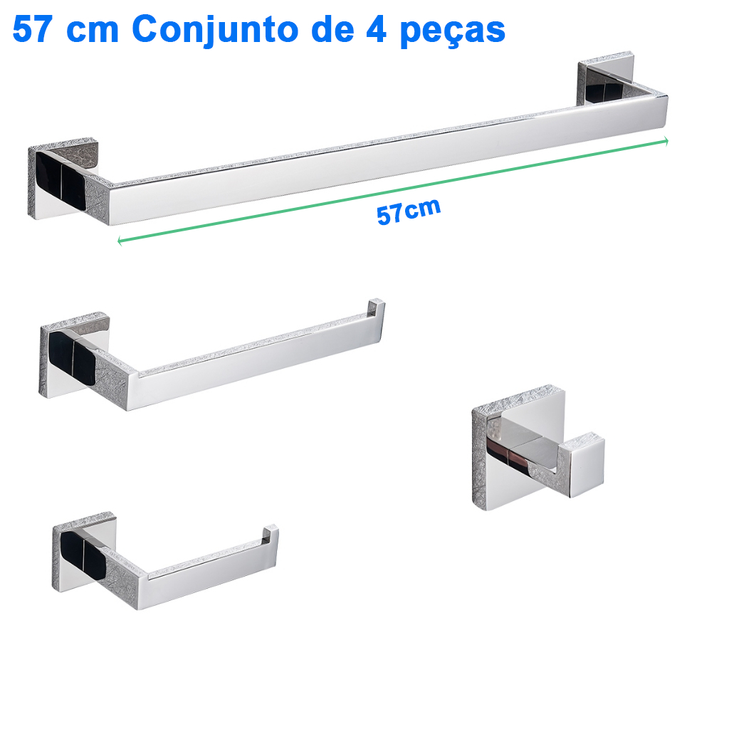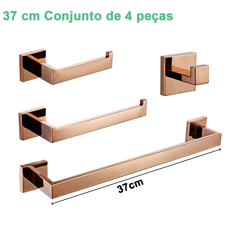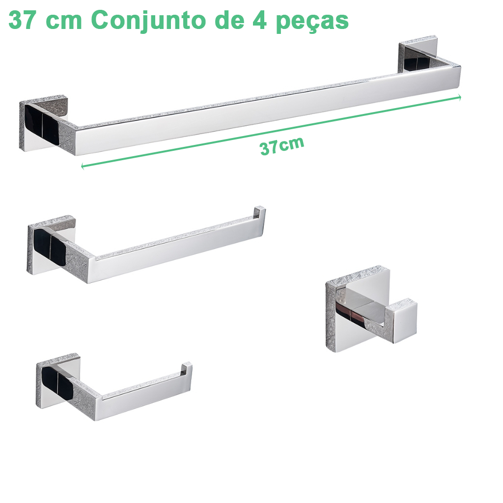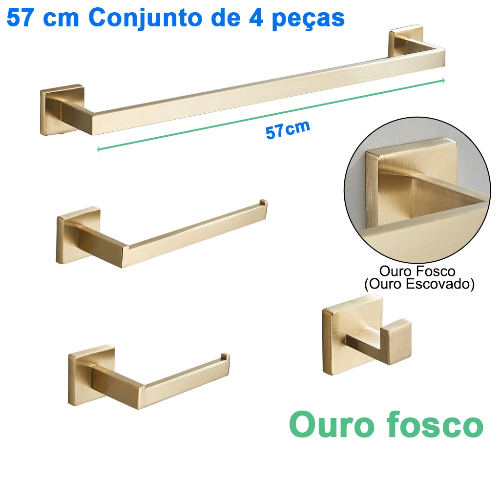 Kit Acessórios Para Banheiro 4 Peças Inox Quadrado 37cm/57cm Toalheiro De Banheiro Preto/Dourado/Prata