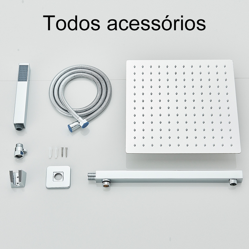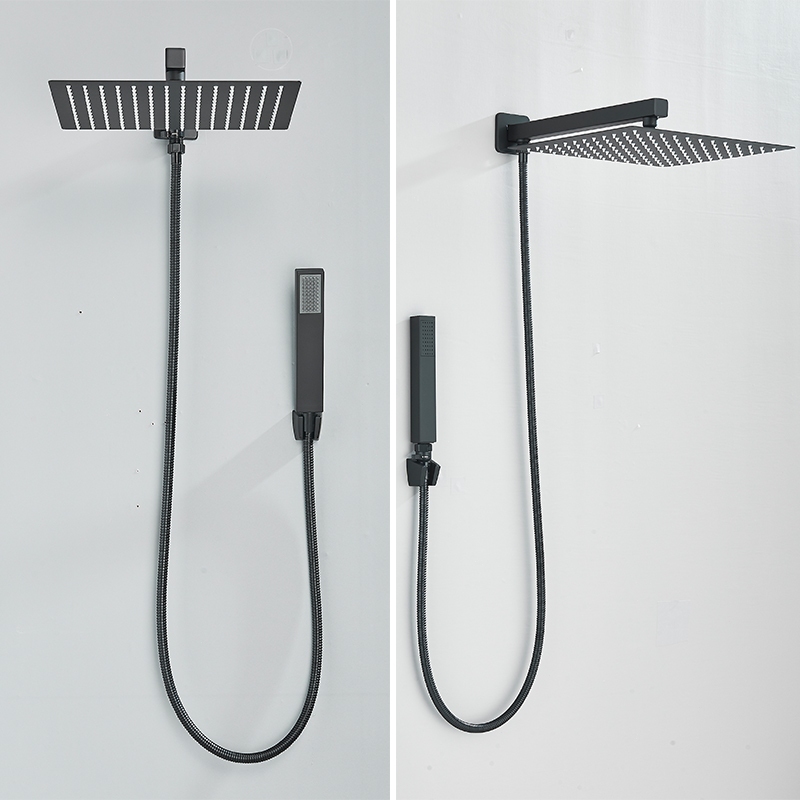 Kit Ducha Chuveiro De Banheiro 20/30cm Inox Quadrada Com Ducha Manual+1,5m Mangueira Preto,Dourado