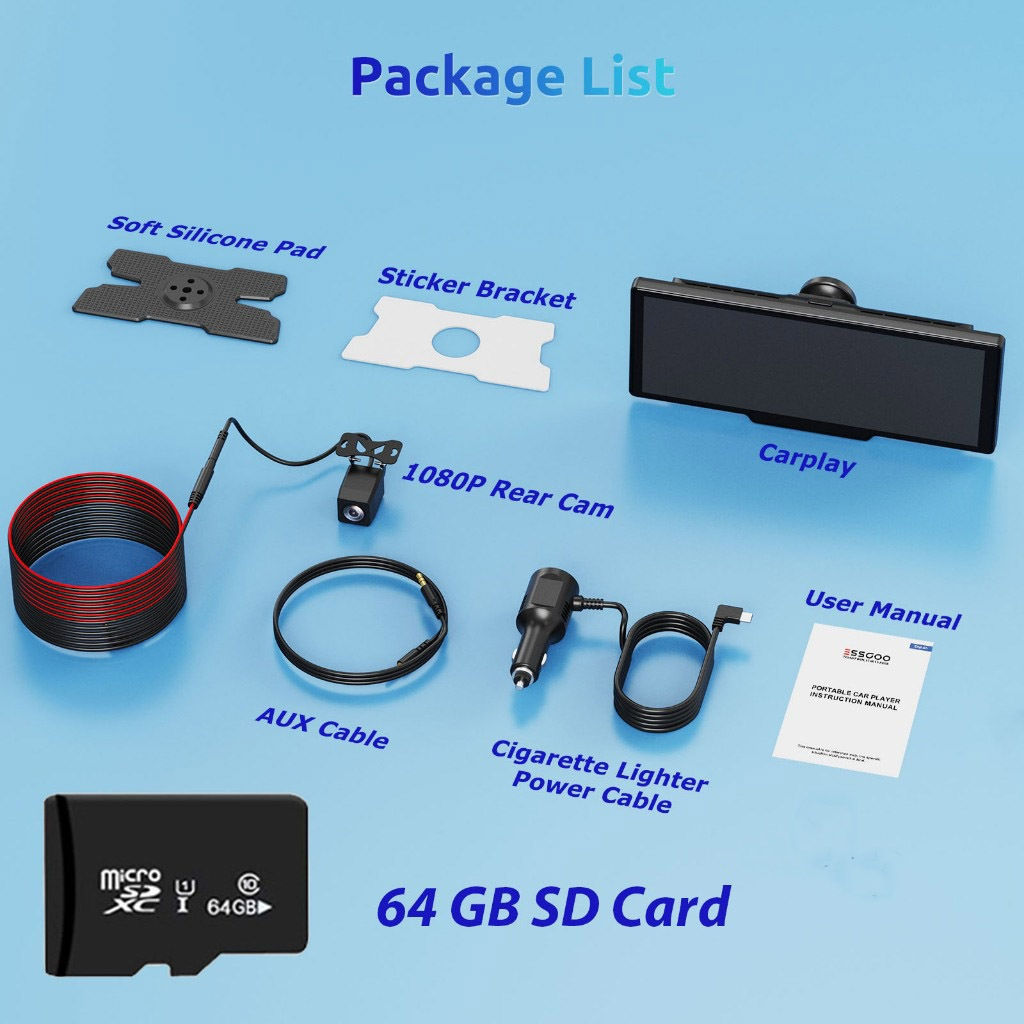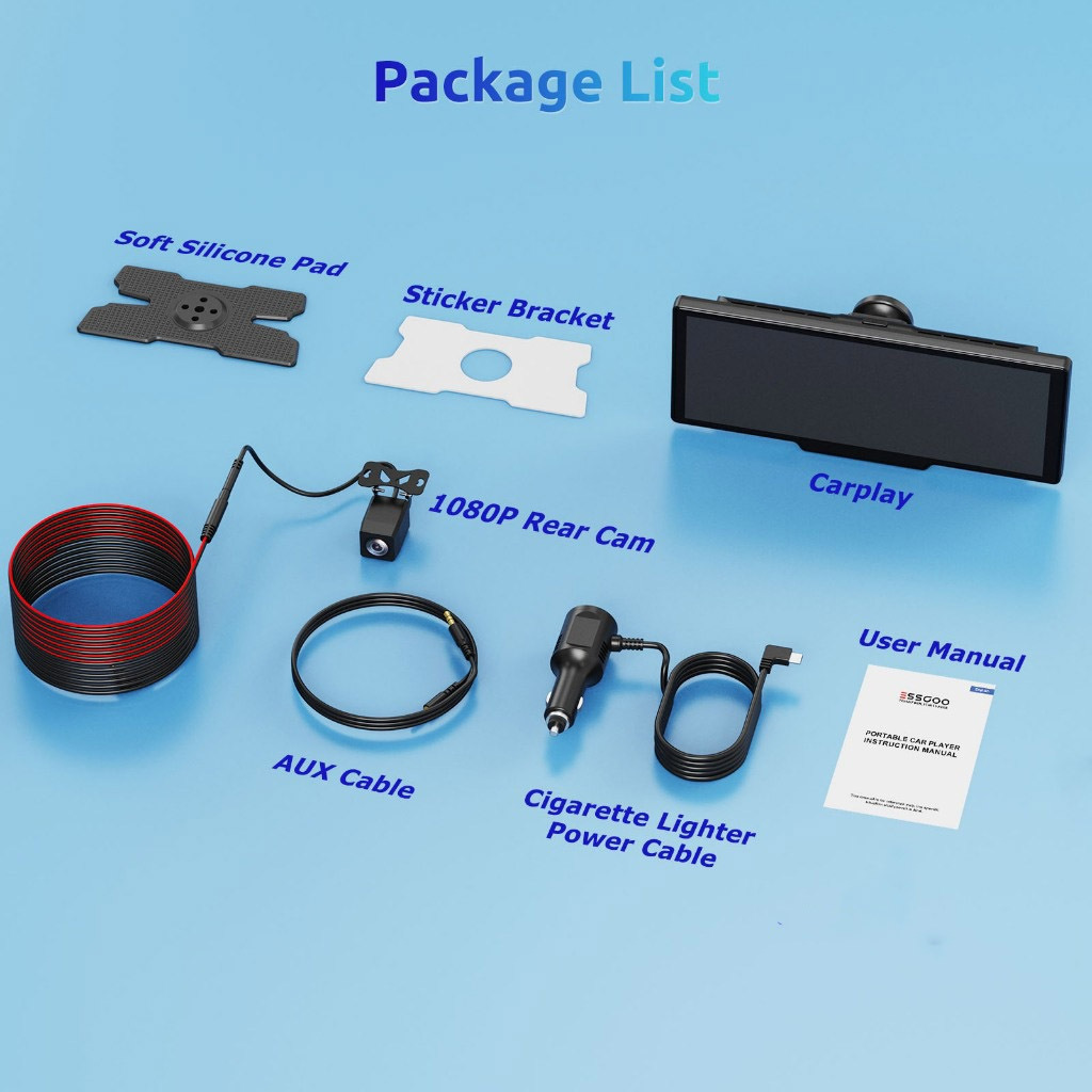 ESSGOO 10.26 polegadas carro gravador de condução sem fio Apple Carplay & Android-auto rádio do carro multimídia