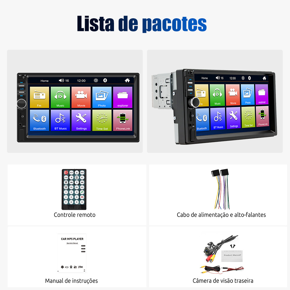 (Envio de São Paulo)ESSGOO 1 din 2 din Rádio De Carro Bluetooth 7 Polegadas Tela Sensível Ao Toque Multimídia MP5 Player