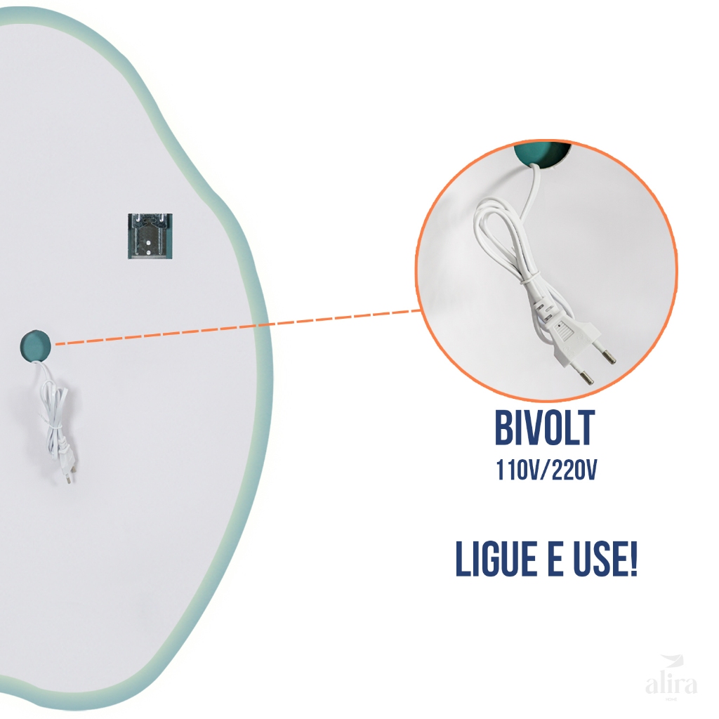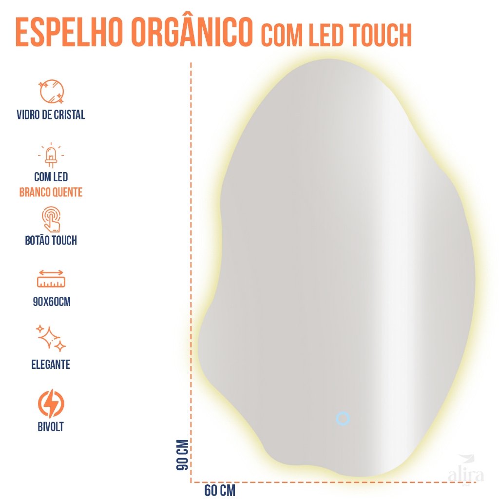 Espelho Orgânico LED Touch 90x60cm Elegante Moderno MR-BH003 Alira Home